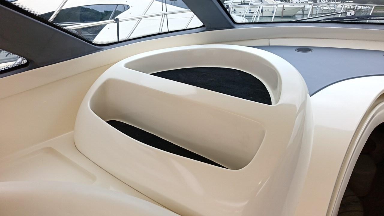 Engine Alarm, Bilge Alarm, Water pressure pump, Special Colour, Deck Shower, Hard top, Fire Extinguishing System, Courtesy Lights, Underwater lights, Gangway (Idraulica), Platform, Manual Bilge Pump, Teak Cockpit, Shorepower connector, Voltage Rectifier, Electric Windlass, swimming ladder, Horn.