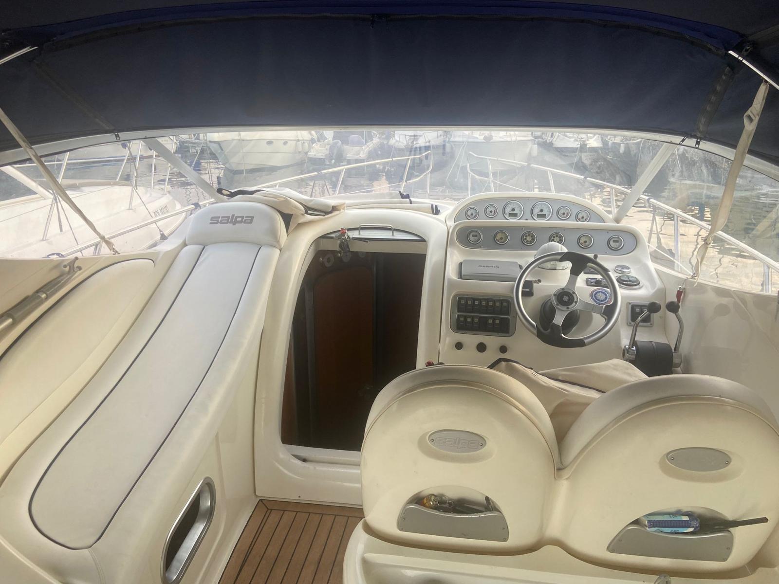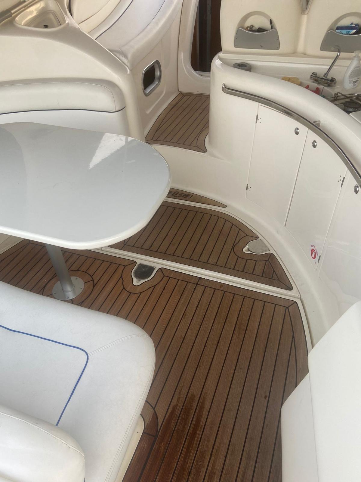 Engine Alarm, Water pressure pump, 4 Batteries (2021), Deck Shower, Hydraulic Flaps (N°2), Fire Extinguishing System, Flaps Indicators, Washbasin in the cockpit, Courtesy Lights, Platform (TEAK 2022), Automatic Bilge Pump, Teak Cockpit, Shorepower connector, Rollbar, Electric Windlass, swimming ladder, cockpit table, Horn.