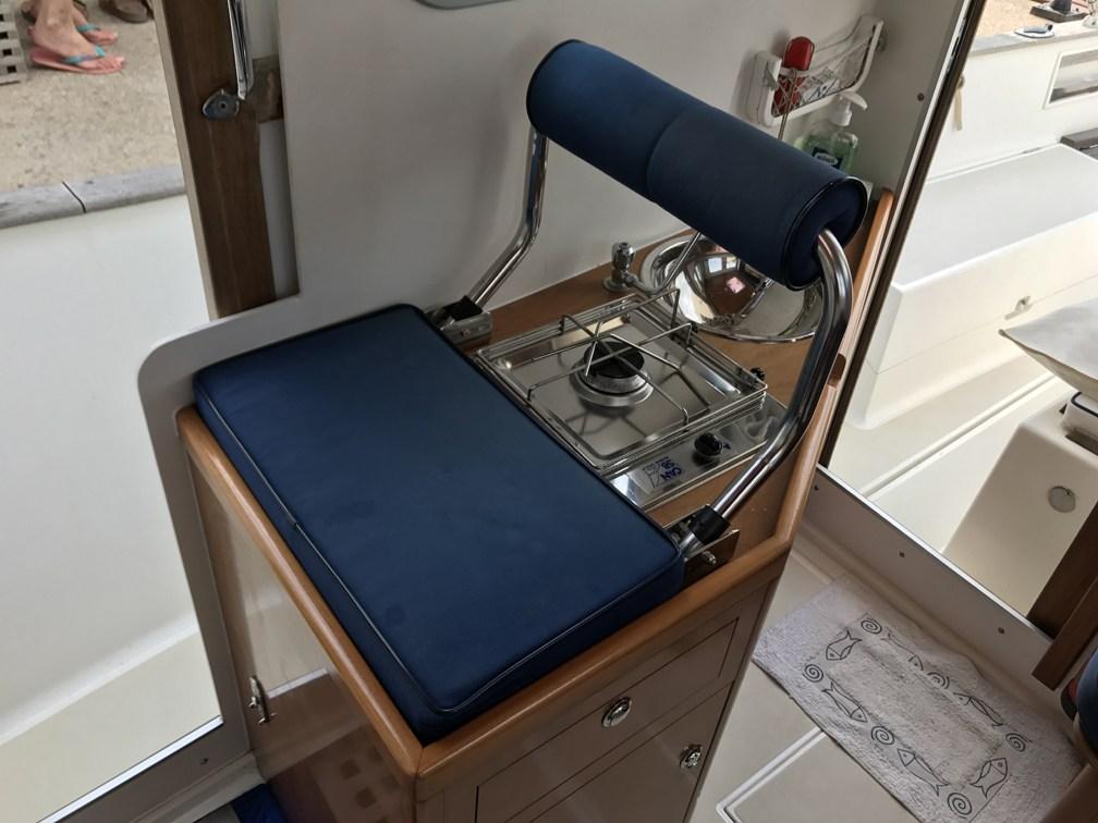 External cushions with blue profile.