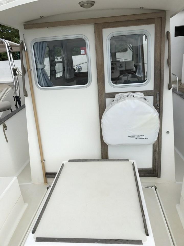 2 Batteries, Deck Shower, Platform, Automatic Bilge Pump, Entry door, Side door, Shorepower connector, Electric Windlass, swimming ladder.