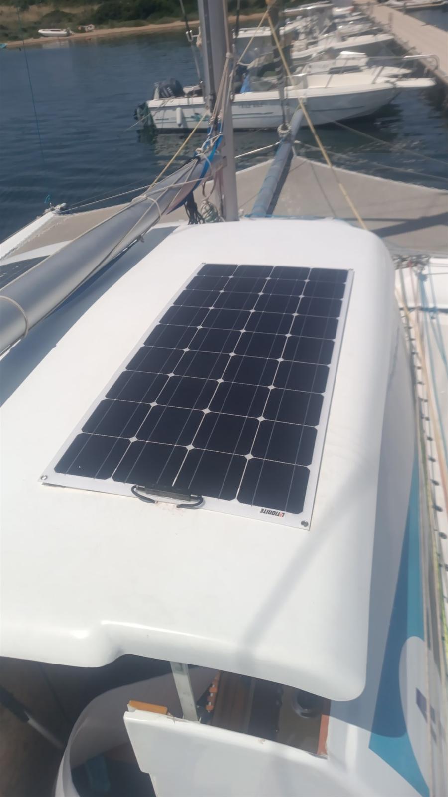 2 Anchor (Fortress + 1 di rispetto), Water pressure pump, 3 Solar panels (1 nuovo), Manual Bilge Pump, Teak Cockpit, Shorepower connector, Electric Windlass (con comando in pozzetto), Rigging in textile (PBO/Kevlar), swimming ladder, Living Room Foldable Table, 4 Winch.