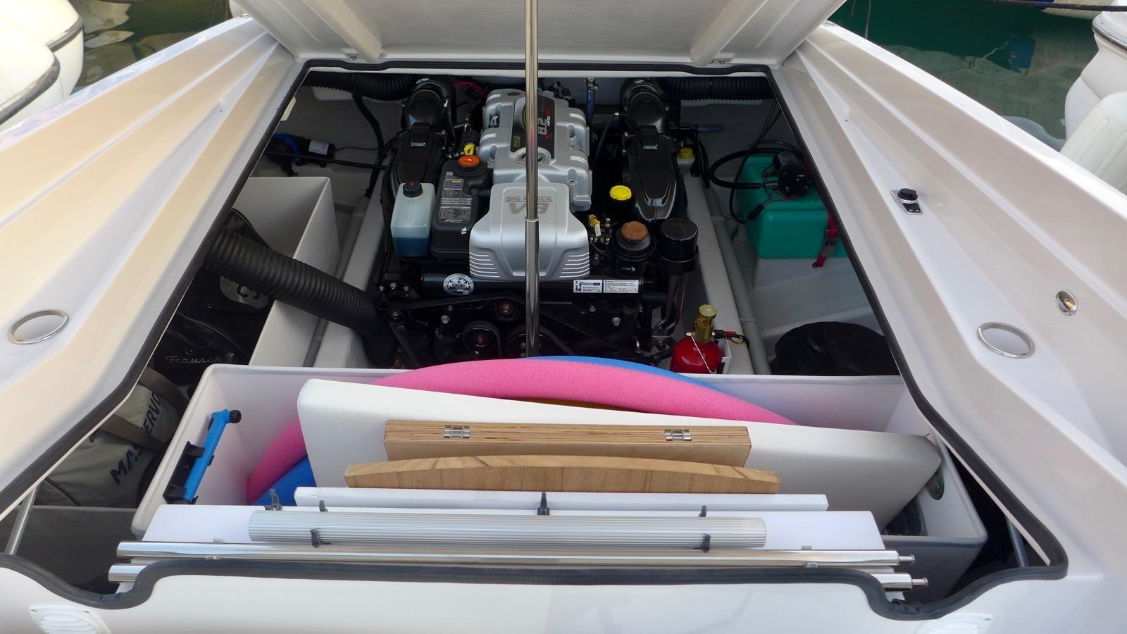 Bilge Alarm, Electric Engine Compartment Opening, Water pressure pump, Teak Side Decks, 2 Electric Flaps, Fire Extinguishing System, Platform, Automatic Bilge Pump, Entry door, swimming ladder, Horn.