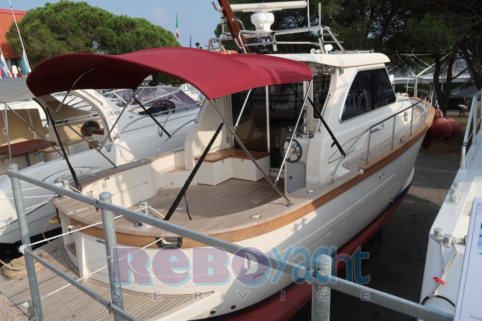 Water pressure pump, Teak Side Decks (nuovi massello), Deck Shower, Directional Spotlight, Tender Crane, Gangway (idraulica), Platform (teak nuova massello), Teak Cockpit (nuovo massello), Shorepower connector, Electric Windlass.
