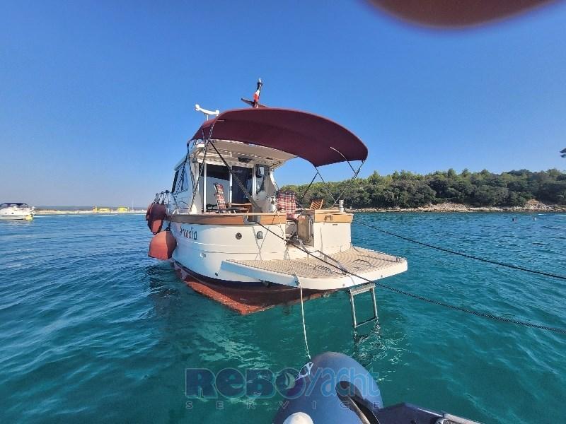 New band leader in solid teak, teak cockpit, deck and new platform in solid wood, osmosis prevention cycle, cutting complete engines with subst. DX raiser, cleaning exchangers, subst. Belt tensioners with belts, new impellers