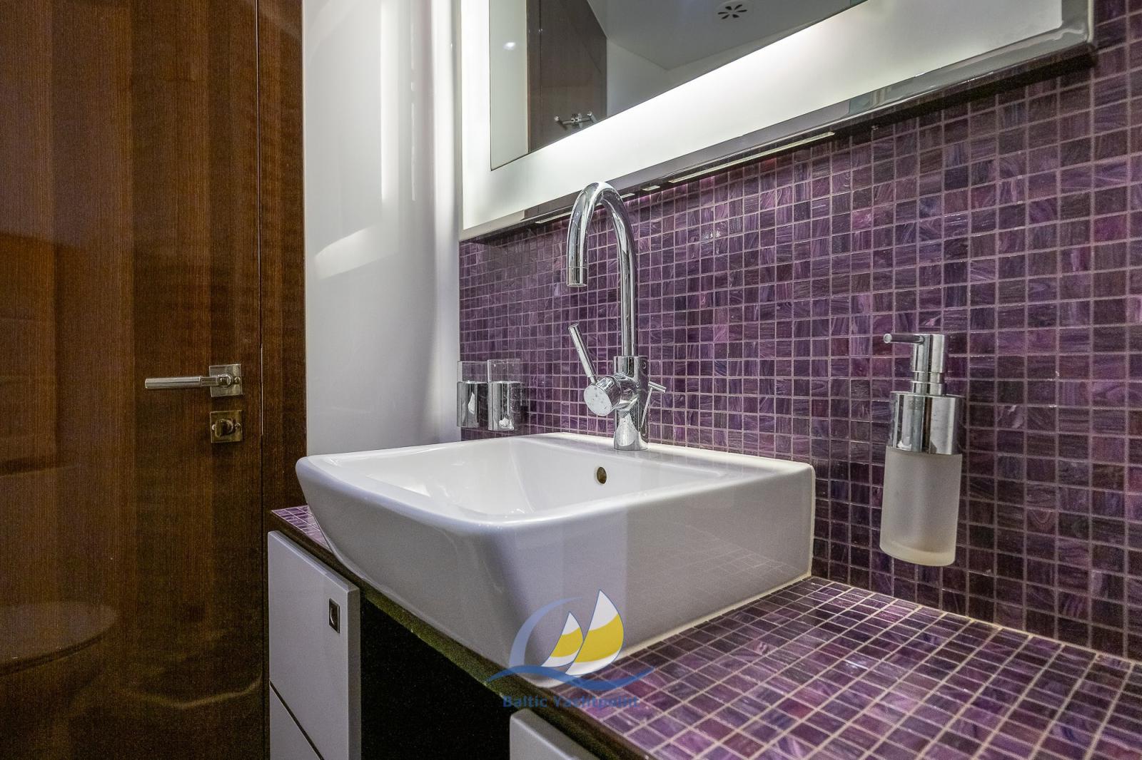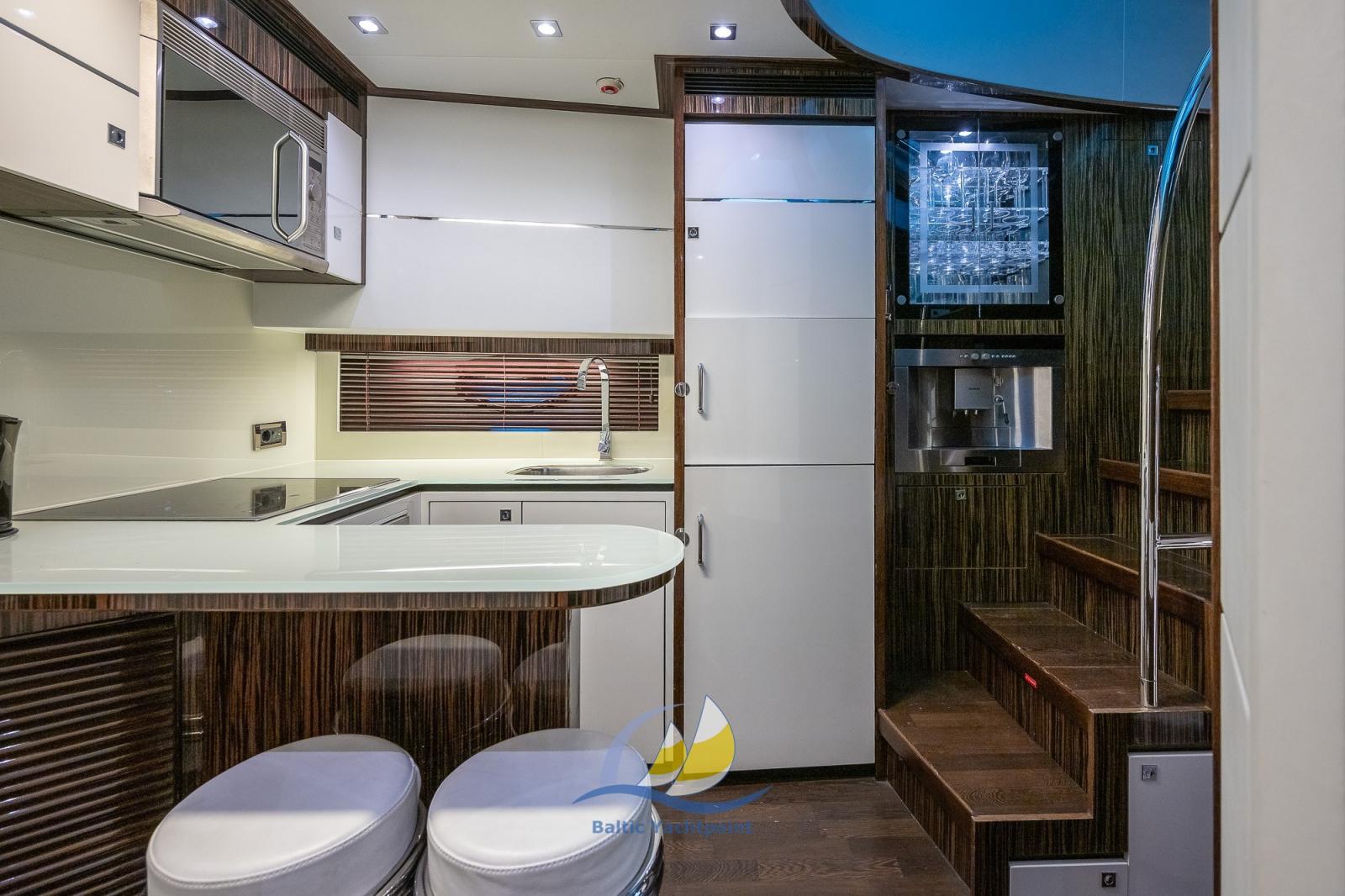 Engine Alarm, Bilge Alarm, Electric Engine Compartment Opening, 8 Batteries, Teak Side Decks, Canvas Wing, 2 Battery charger, Deck Shower, Electric Flaps, Hydraulic Flaps, Tender Garage, Fire Extinguishing System, Compressor Air System, Jet Boat, Anchor Chain Washdown, Gangway, Platform, Manual Bilge Pump, Entry door, Teak Cockpit, Shorepower connector, Water harbor connector system, Electric Windlass, Gang Board, swimming ladder, cockpit table, Tender (Wiliams Jet Tender), Horn.