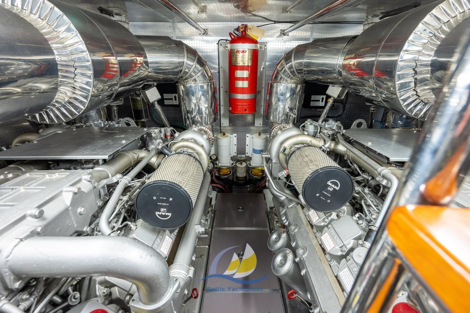 The yacht is equipped with powerful MAN diesel engines, which enable impressive speed and range.