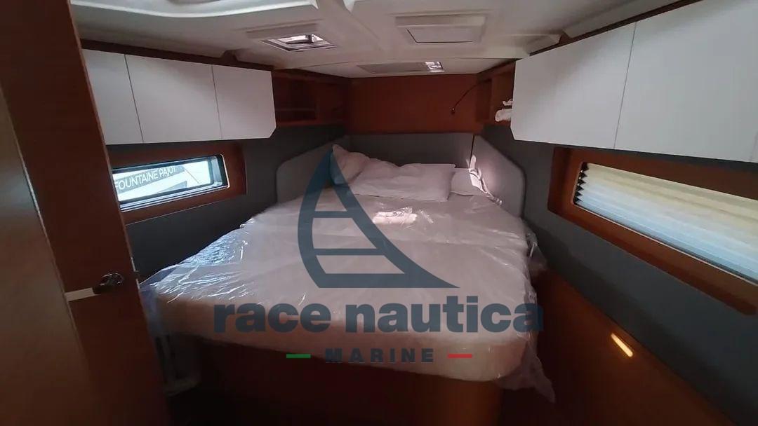 STD version - 3 cabins + 2 bathrooms, shower room, walled galley, tunnel bow thruster, supplement for 57HP Sail Drive engine, lazy bag, lazy jacks, rigid vang, cockpit shower (hot/cold), wooden cockpit table, 1000w windlass with remote control, 220v system, dock and boat socket, battery charger, 2000W inverter, 40l boiler, rollable blinds with mosquito nets, stainless steel bathroom ladder, electric seawater pump at the sink, wine cellar under the dunnage in the dinette, 2 T45 winchs on the sidedeck, self-tacking jib rail + Genoa rail, German mainsheet, equipment for gennaker or code 0, Triton "2" repeater on the left, Triton "2" repeater on the right, autopilot, VHF V20B, hull preparation + black antifouling, T45 electric winch on the deckhouse (unitary), additional opening porthole aft cabin cockpit side, sprayhood with handrails, bimini, Classic cushions, difference for the whole chain 50mt instead of the rope, anchor with chain and rope, 6 fenders, 3 mooring lines, gas plate barbecue in the bench in the cockpit and sinksecond additional fresh water tank 180l not compatible with watermaker, electric toilet.