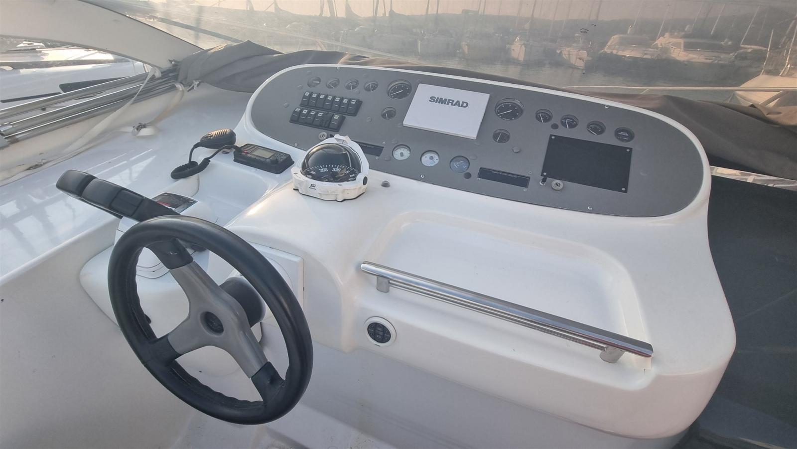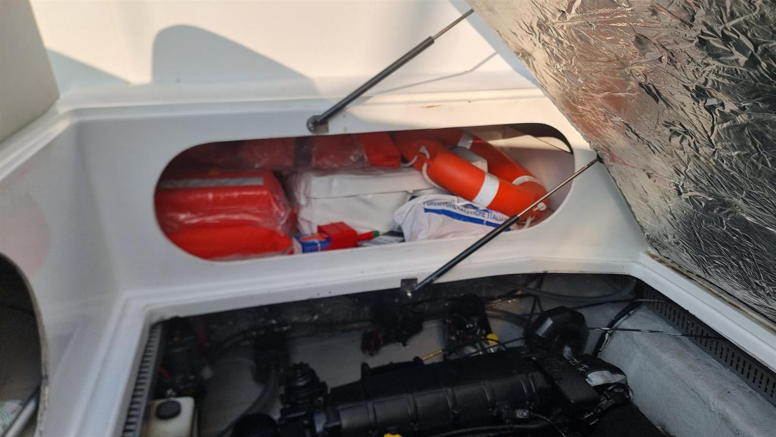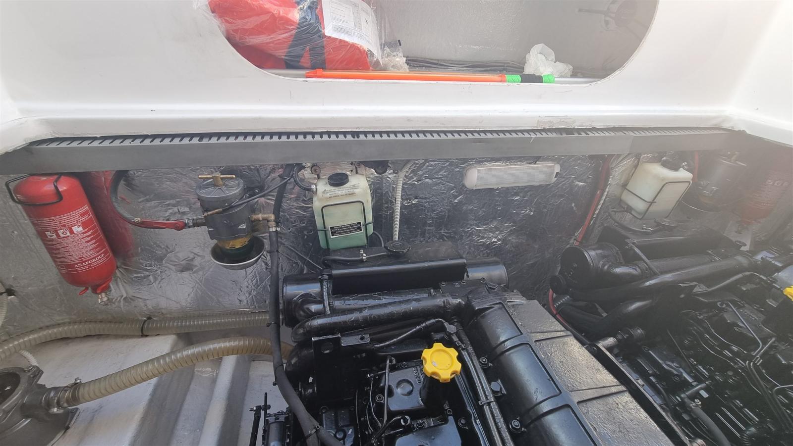 boat as new, a major refit was done in 2024: complete hull and deck polishing. repainted the gray side band, anti-vigetetative, bilge cleaning and complete repainting, new side windows, total renovation of the cushions (stern, bow, driver's seat and table sofa in the cockpit, teak sanding in the platform, new awning, new batteries and battery switch, new electric winch, new charger, new cartographic GPS latest generation. New boiler, replacement of all seacocks, replacement of all diesel and water pipes, soundproofing of new engines, new bilge pumps, new kitchen gas pipe, led rgb underwater lights, new dashboard switches, repainted dashboard, new rudder angle, new diesel level instrument, new fusion stereo system, new vhf Engines redone at zero hours, Feet completely overhauled, steel propellers.
