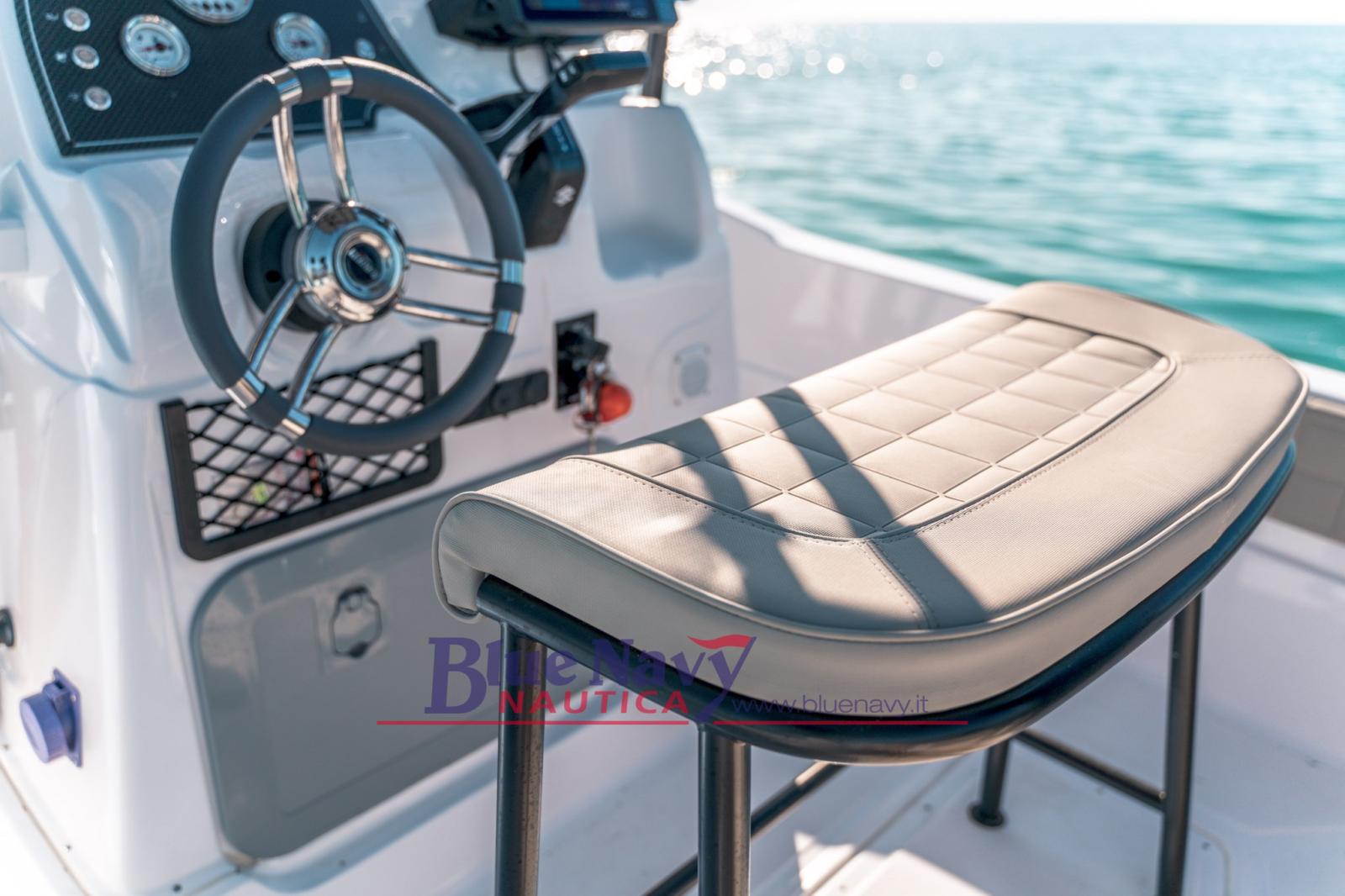 Standard equipment: bilge pump, navigation lights, mechanical steering, retractable mooring bollards, ascent ladder, bow sundeck, white hull, upholstery, fuel tank 105lt, 4 steel rod holders, fresh water tank 45lt, shower system, sea intake, quick pump coup, live tank, catch tank.