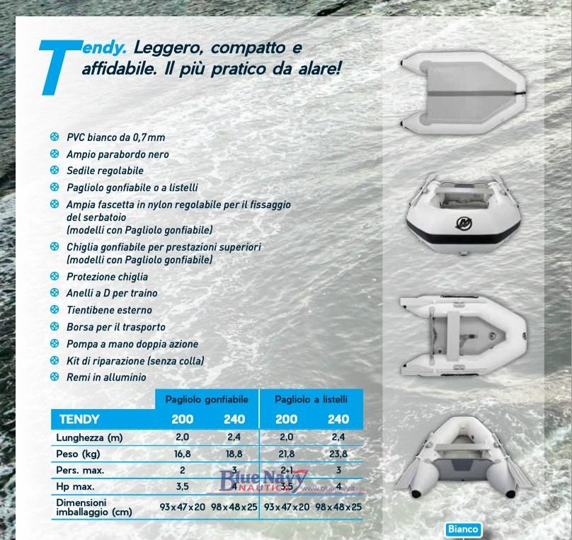 White PVC - Large black fender, Adjustable seat - External handrail, Wide adjustable nylon strap for attaching the tank, Inflatable keel for superior performance, Keel protection, D-rings for towing - Hand pump, Carrying bag - Repair kit (without glue).