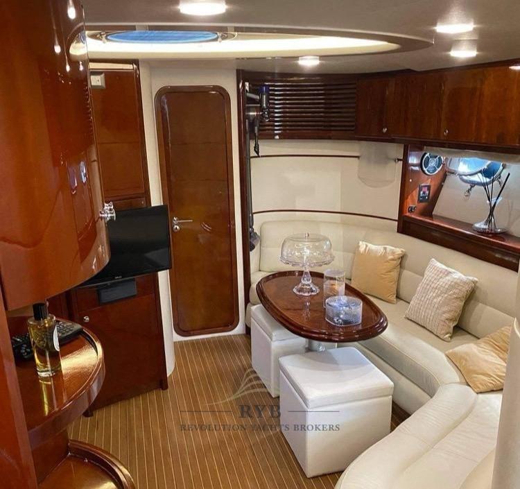 Engine Alarm, Water pressure pump, Special Colour, Deck Shower, Directional Spotlight, Hydraulic Flaps, Tender Crane, Flaps Indicators, Washbasin in the cockpit, Courtesy Lights, Gangway, Platform, Automatic Bilge Pump, Manual Bilge Pump, Teak Cockpit, Shorepower connector, Water harbor connector system, Electric Windlass, swimming ladder, cockpit table, Living Room Foldable Table, Horn, Stern Winches.