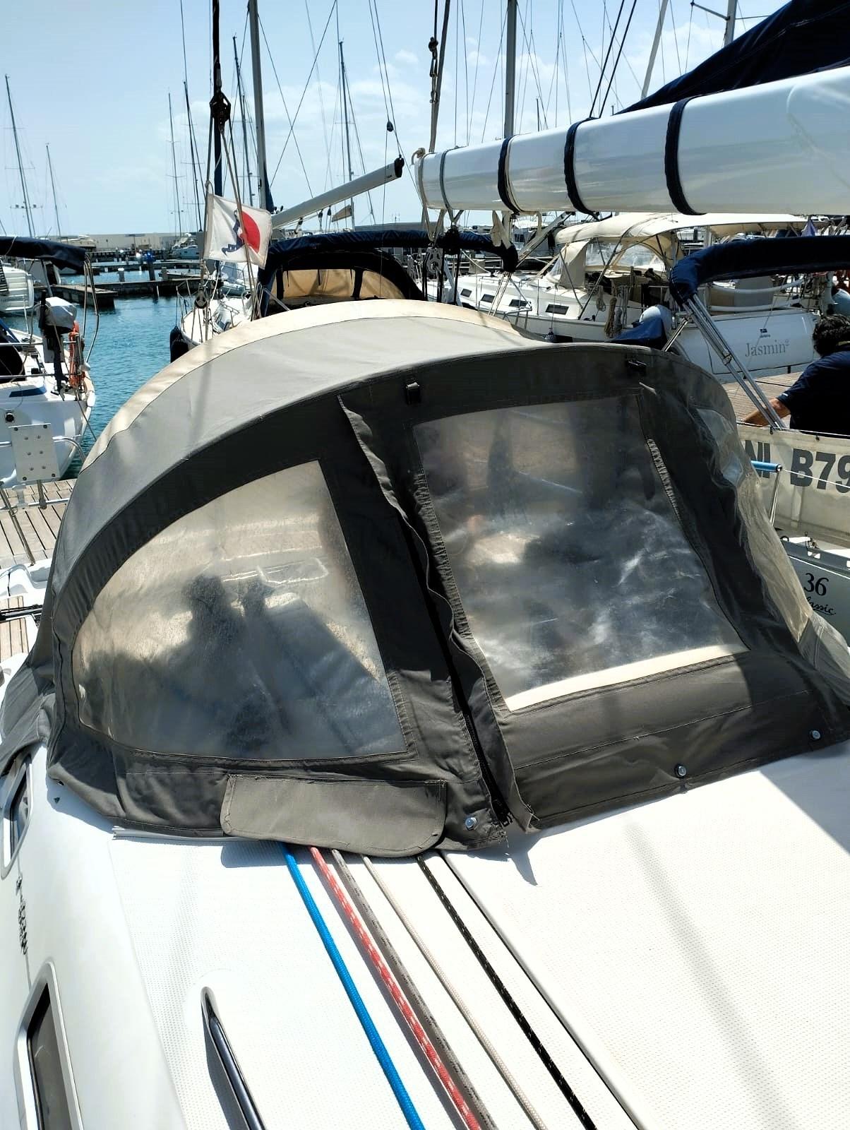 Engine Alarm, Water pressure pump, Life Raft (10pp), 2 Batteries, Deck Shower, Auxiliary Engine, Manual Bilge Pump, Teak Cockpit, Shorepower connector, Water harbor connector system, Electronic instrumentation repeater, Electric Windlass, Rod rigging (rifatto nel 2018), swimming ladder, Outboard Engine Support Bracket, Tender, 4 Winch, Windex.