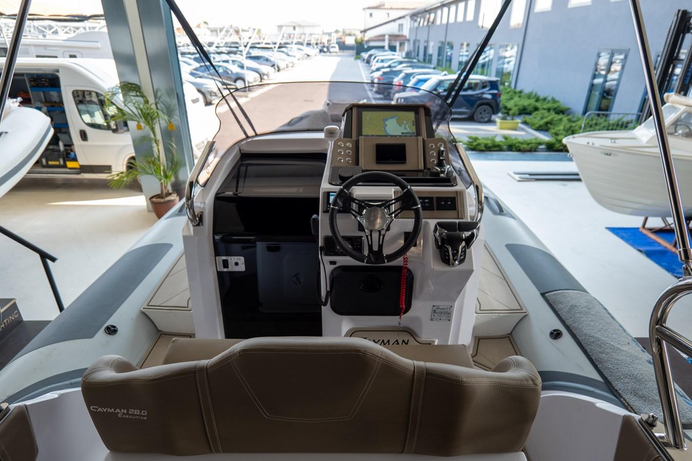Cayman 28.0 Executive, just over 8.60 m long and 3.30 m wide, is a modern inflatable boat with generous volumes and can be trailered with deflated tubes.