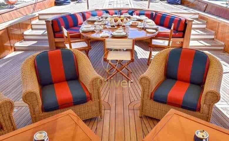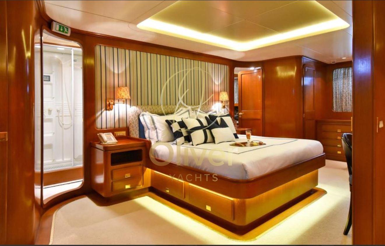 Guest cabins include a master cabin with a king size double bed, a VIP cabin with a double bed and 2 cabins with a double bed on the floor. A further four cabins are available for up to eight crew members.