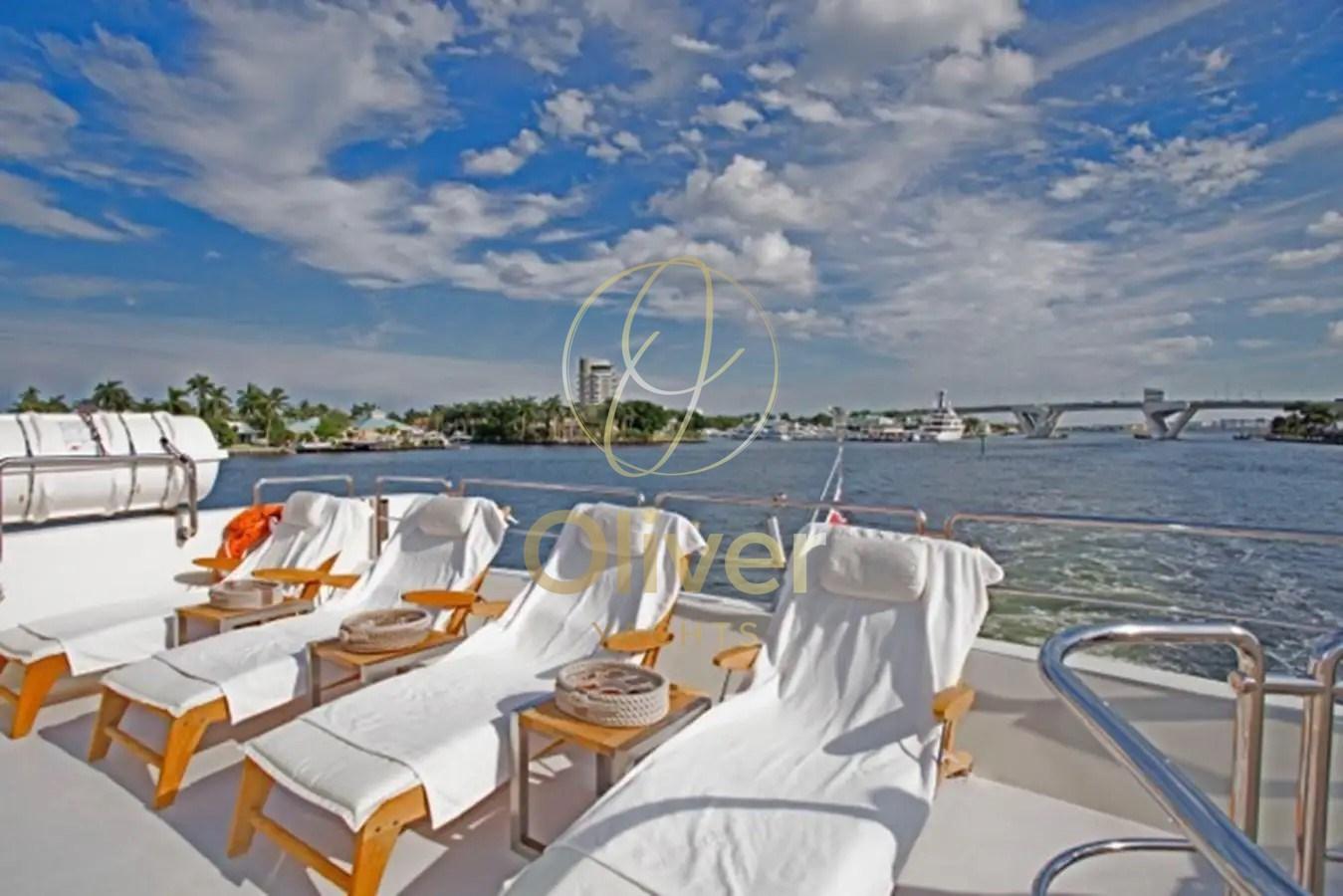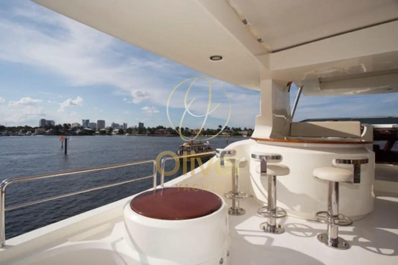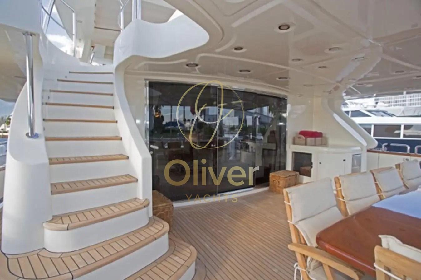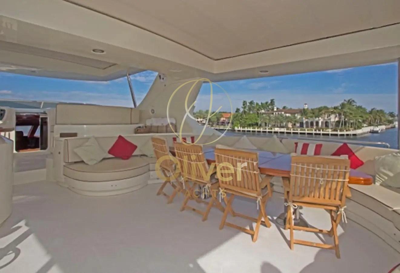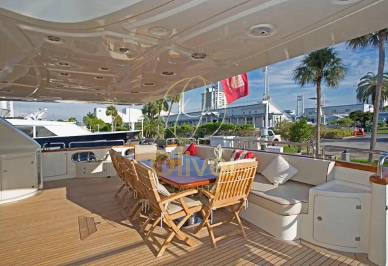 Fume/Gas Detector, Engine Alarm, Bilge Alarm, Electric Engine Compartment Opening, Water pressure pump, Teak Side Decks, Deck Shower, Headlights fixed on the stem, Directional Spotlight, Hydraulic Flaps, Tender Garage, Crane, Hard top, Fire Extinguishing System, Compressor Air System, Flaps Indicators, Anchor Chain Washdown, Courtesy Lights, Underwater lights, Gangway, Platform, Automatic Bilge Pump, Manual Bilge Pump, Entry door, Side door, Teak Cockpit, Shorepower connector, Water harbor connector system, Electronic instrumentation repeater, Hydraulic Windlass, swimming ladder, Waste Water Purifier System, Stabilizers (PINNE), Tender, Horn, T-Top, Teak Deckhouse, 2 Stern Winches, 2 Bow Winches.