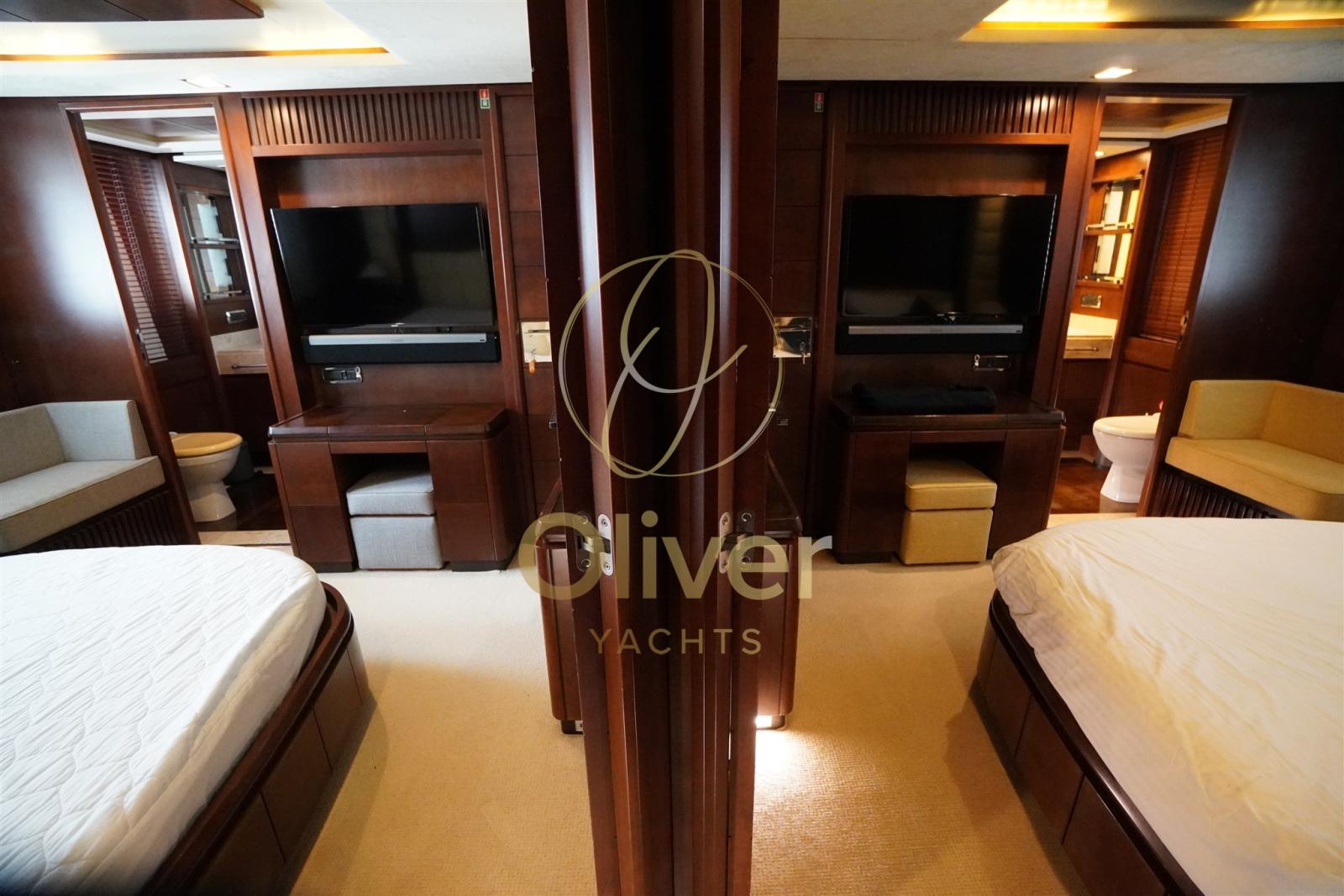 A luxury retreat: The owner's cabin is a true oasis of peace and relaxation. A king-size double bed, a private bathroom with an immense shower and a Jacuzzi tub and finally an oversized walk-in closet offer maximum comfort and privacy. The panoramic view of the sea completes the atmosphere of luxury and enchantment.