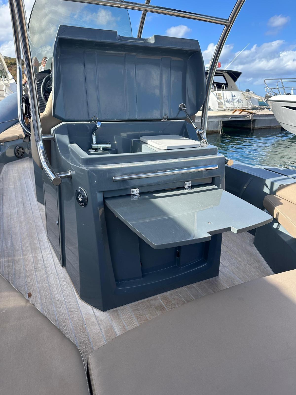 GRP stern platforms with retractable swim ladder