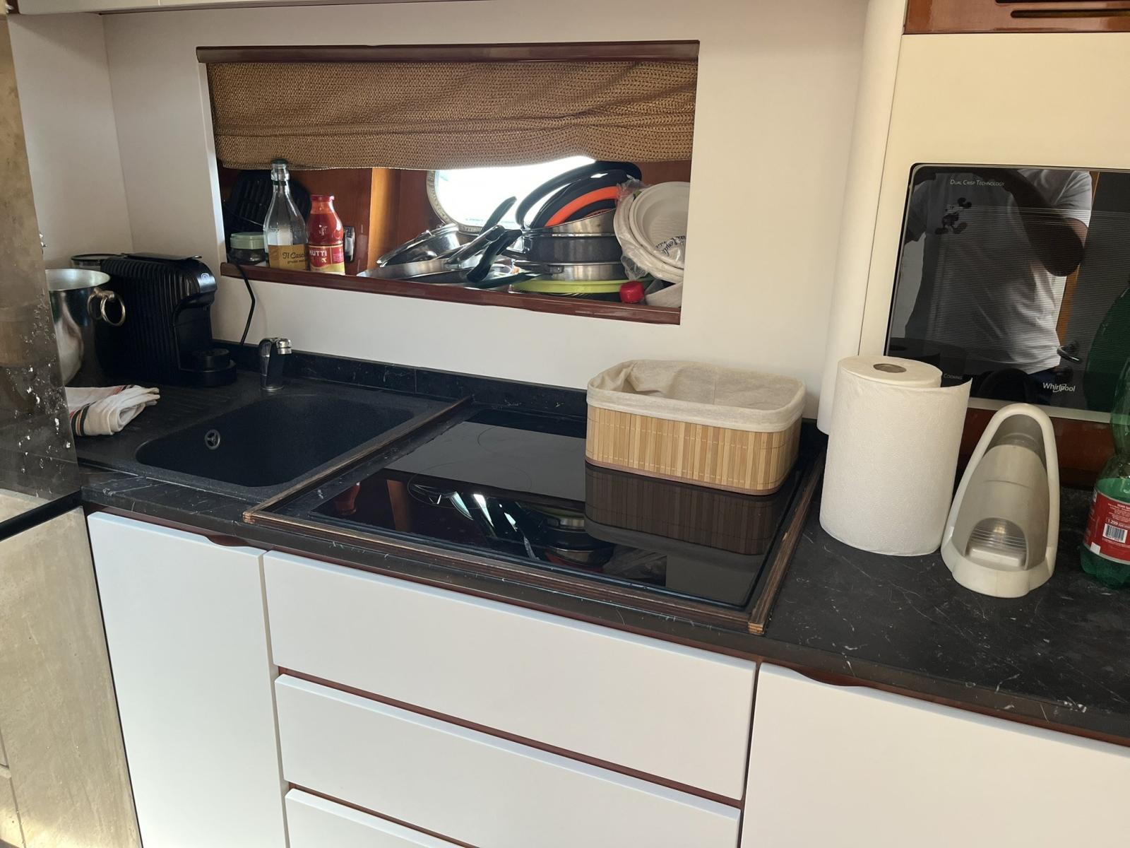 Galley (PIANO COTTURA IN VETRO CERAMICA SIA INTERNO NUOVO 2024 CHE ESTERNO , LAVELLO ANCHE ESTERNO DEL 2011), Oven (nuovo 2024), Deck Refrigerator (nuovo 2024), Refrigerator (1 DA 100 LITRI+ 1 DA 115 LITRI), Washer (E ASCIUGATRICE CON MOBILE A SPECCHIO PIUMA DEL 2011).