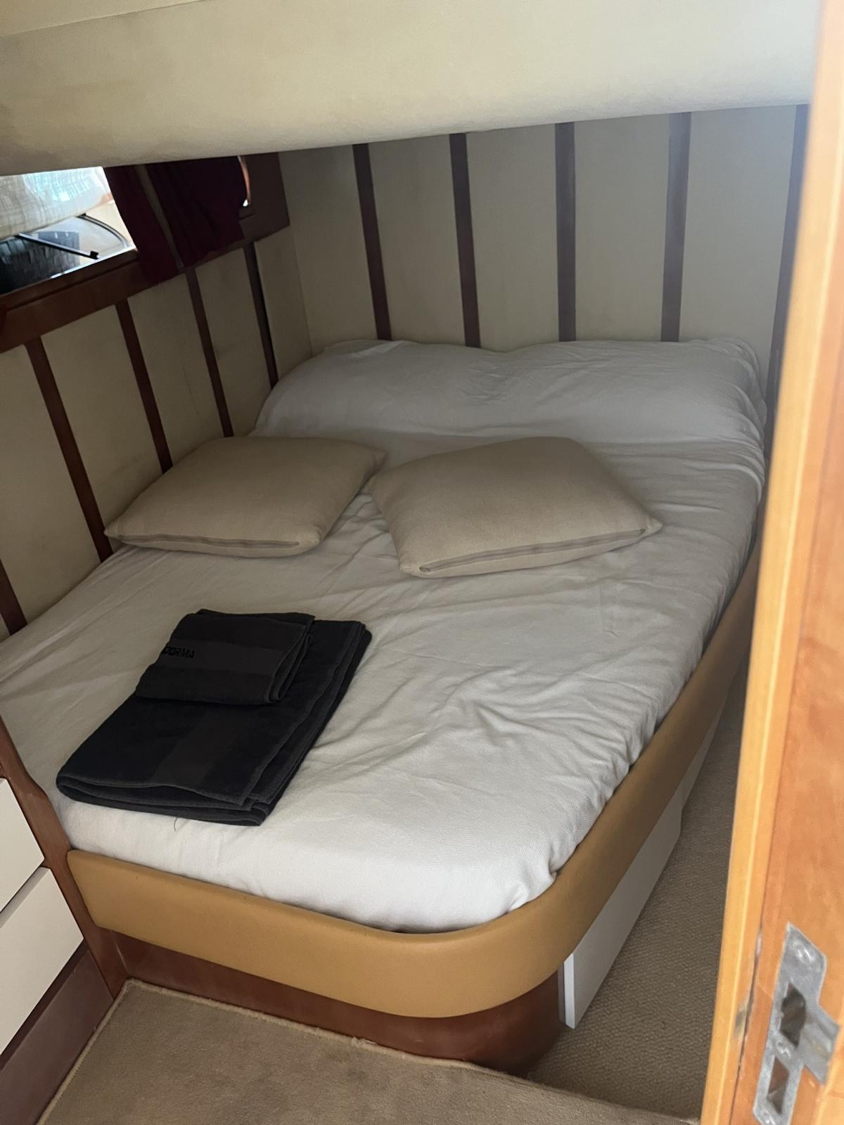 Internet throughout the boat with wifi. Reinforced and simplified tender hauling system, deck floor in non-slip, teak joints in white platform. Shower in the bow . Installation of the outdoor sink and kitchen with black Corian top and wooden cover. Cushions, bow and stern in order. Balanced propellers 2024 . Arneson overhaul and all related piping and pumps annual , arneson headphones 2024. . Replaced Arneson Tools 2020, . Removable mosquito nets at all portholes and at the two deck escapes. Large locker and drawer under the bed of the owner's cabin with opening on pistons Doubled pumps for all toilets. Additional sub-those spotlights. Swim ladder with glasses also on the sides, teak beach 2021 polishing 2024. Refitting and extraordinary maintenance Engines, Generator, Arneson 2024 with detailed list privately on request. New 2024 on-board electronics. Fusion 2024 plant,