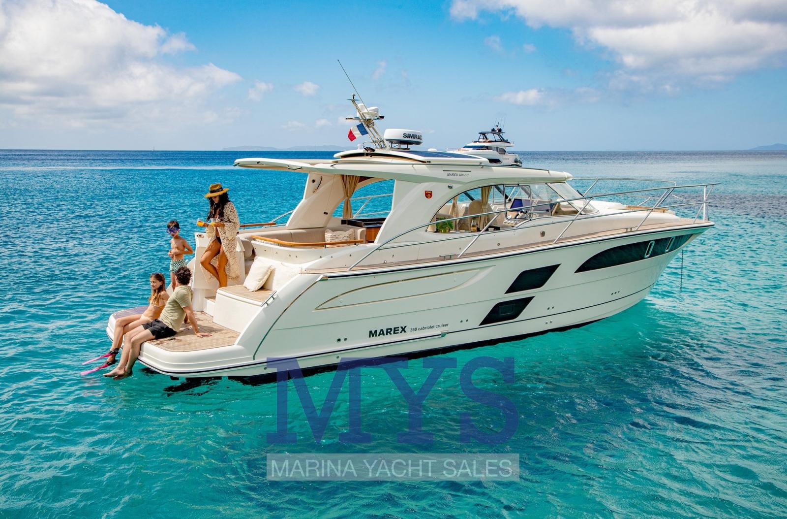 The Marex 360 Cabriolet Cruiser is a fully planned open cabin cruiser with one of the largest convertible cockpits in its class. No boat under 40 feet has a larger cockpit area than the new Marex 360 CC. The popular solutions of the previous model – 350 Cabriolet Cruiser can be recognized and has been developed and implemented in this new, magnificent model.