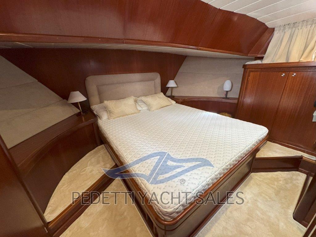Usual entrance dinette, we go down we find the cabin with two L-shaped beds and opposite the gas kitchen, the two kitchen refrigerators and dinette with 12/220 power supply are new. The solution that interrupts the hallway that gives to the forward cabin after the galley is beautiful. The table has given way to an extension of the sofa that makes a space in the living room pleasant. At the bow the usual large cobina with bathroom and separate shower.