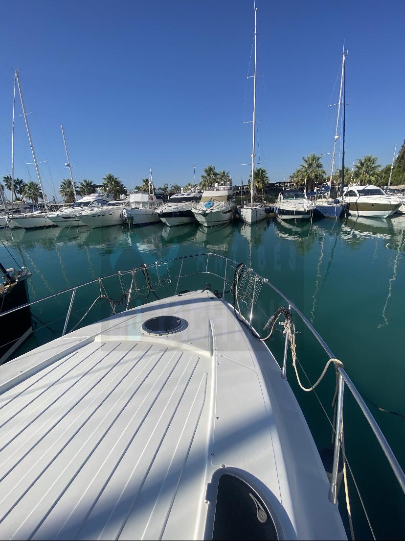 This model offers 2 double cabins, 2 bathrooms with electric toilets, a bright wooden saloon, a fully equipped galley and a large sundeck. Powered by 2 VOLVO D6 435hp (IPS 600), with only 413 hours.