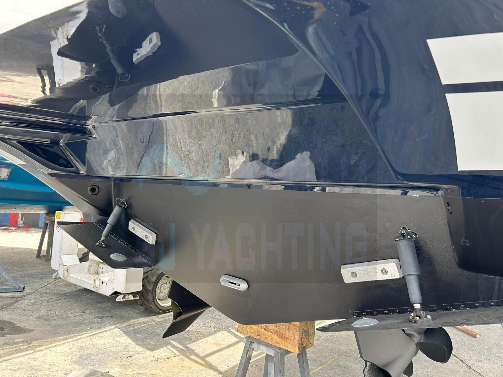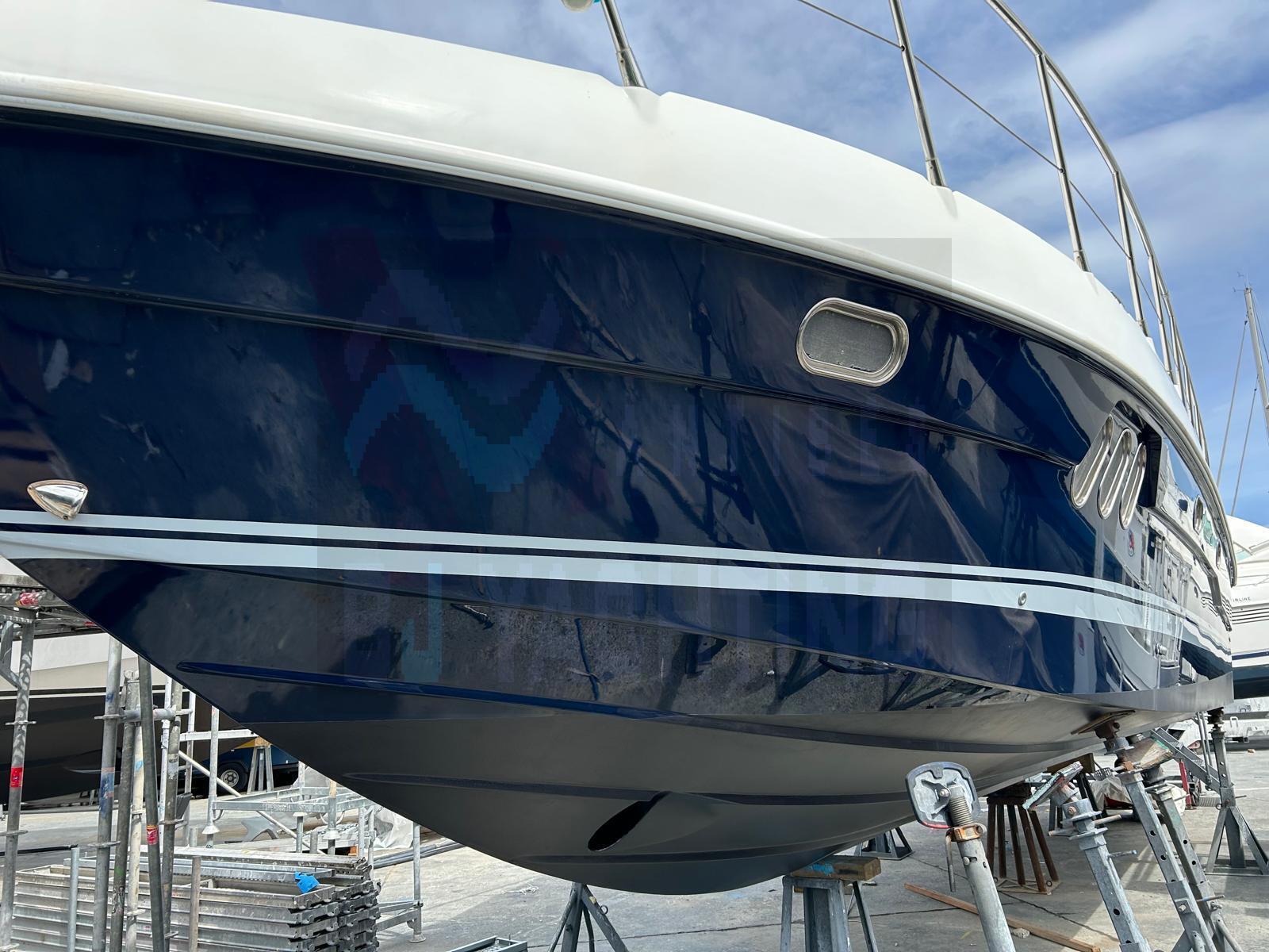 The 2024 refit includes a new Flexiteck, a complete overhaul of the engines and IPS, hull paint (Awlgrip) with hydrogumming, epoxy primer, antifouling, new valves and through-hull fittings, new sunroof motor, new upholstery (€100,000 cost).