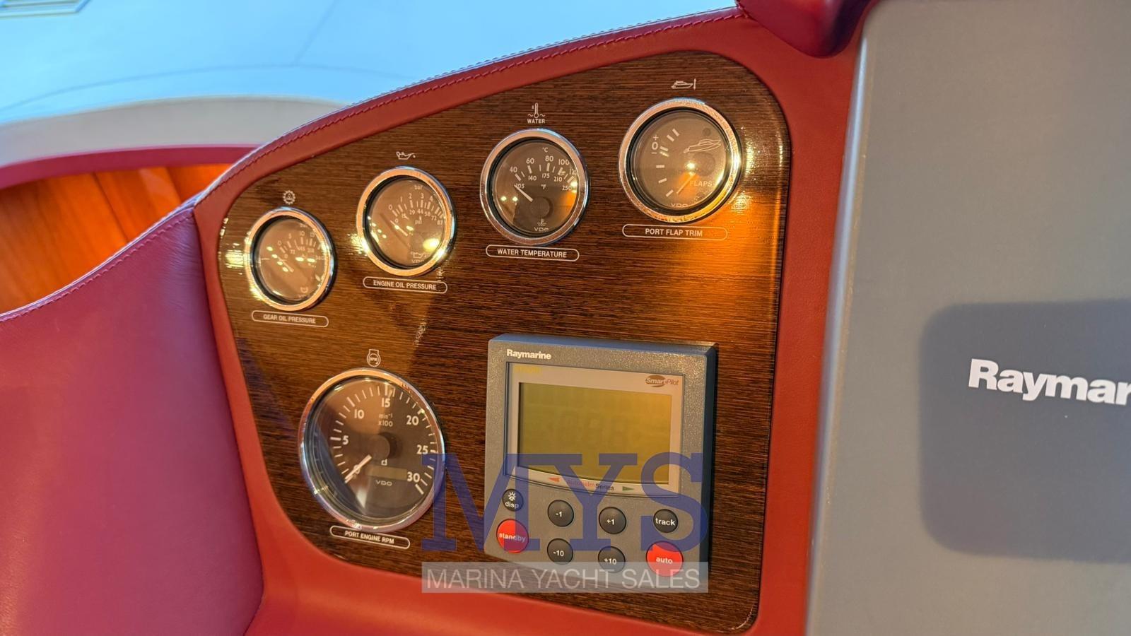 Rudder angle indicator, Radar Antenna, 2 Compass, 2 Electronic engine control, On-Board Computer, Chain counter, DSC vhf, 2 Depth Sounder (Raymarine), 2 GPS (Raymarine), Maps and guides, 2 Autopilot (Doppia stazione), Plotter with GPS antenna, Control panel, 2 Radar (Raymarine), 2 VHF Radio.