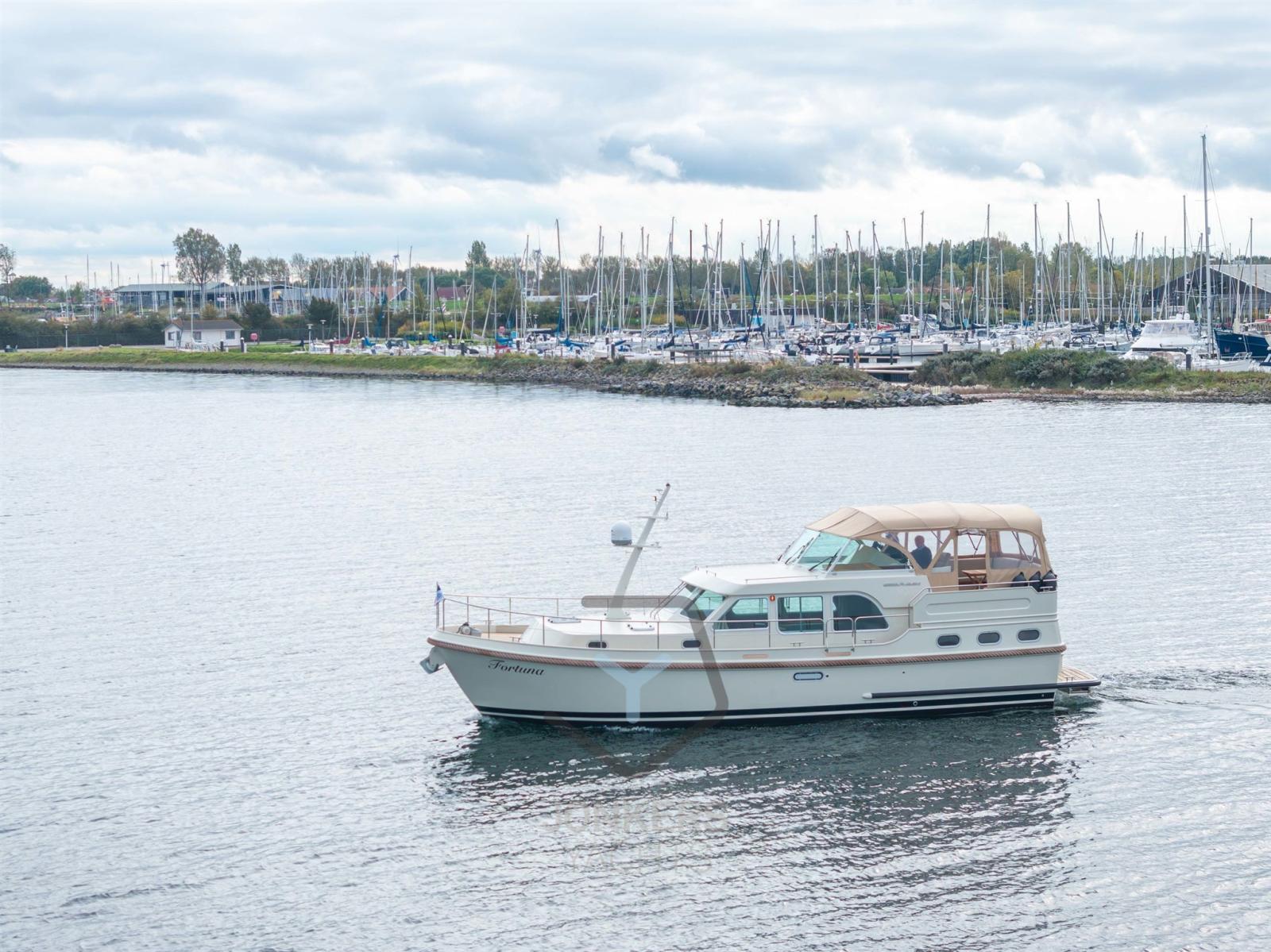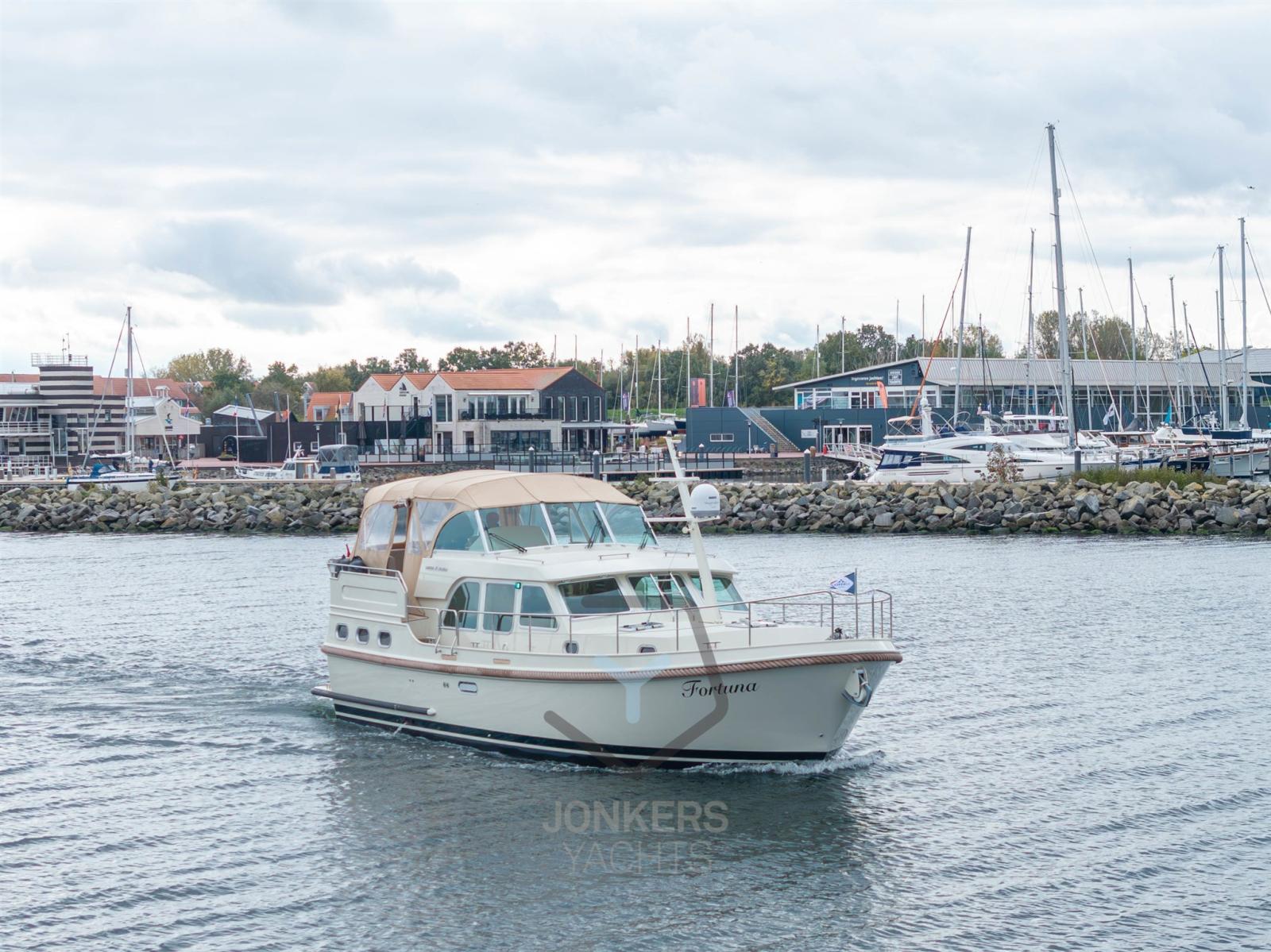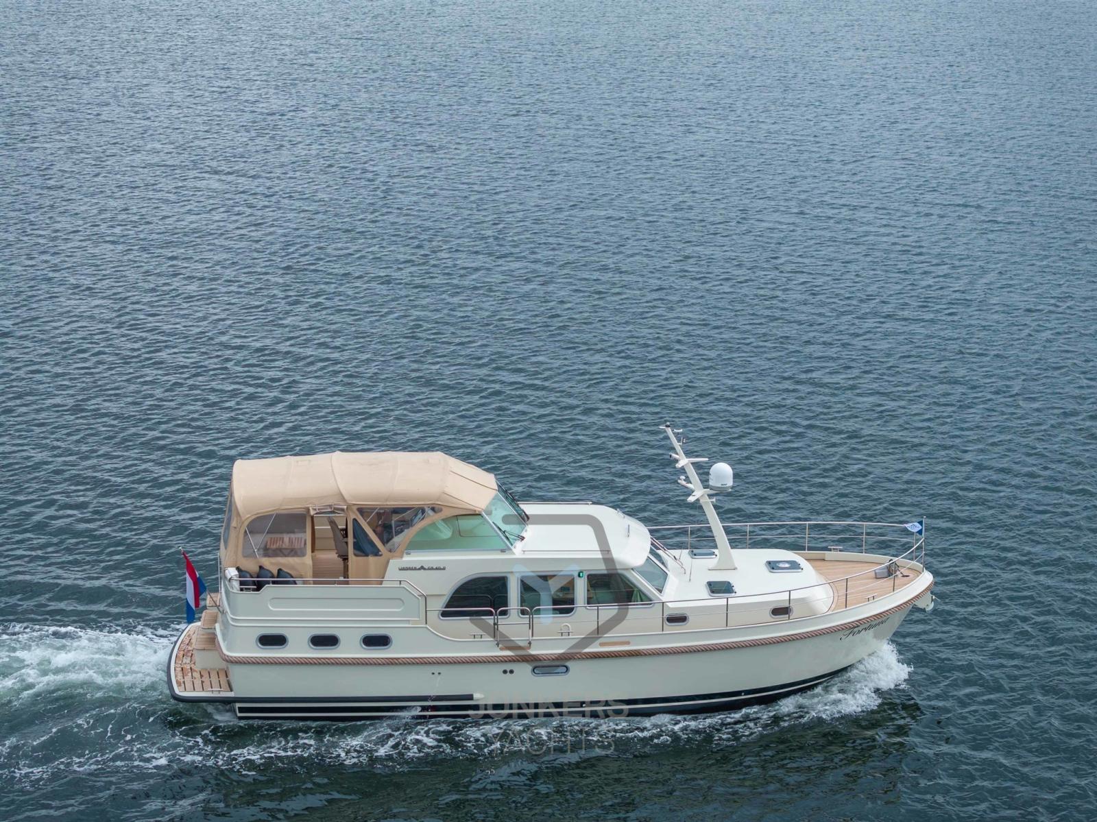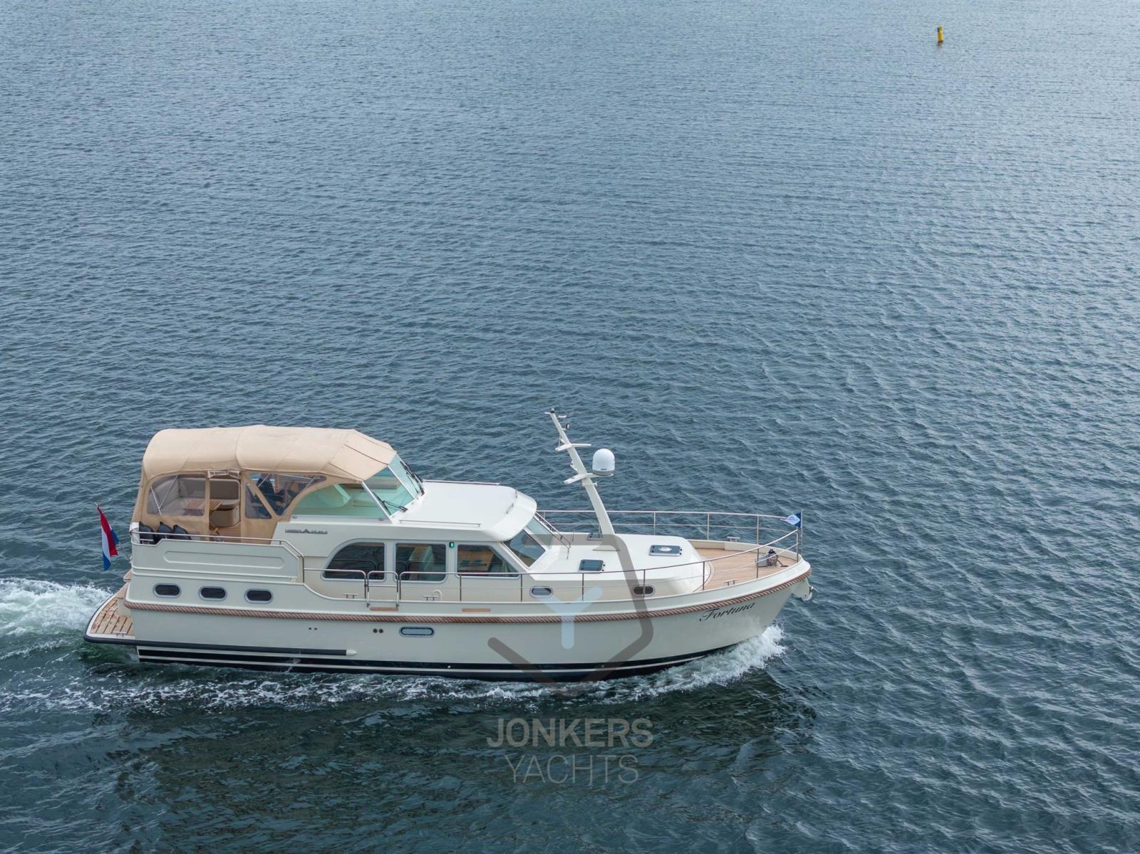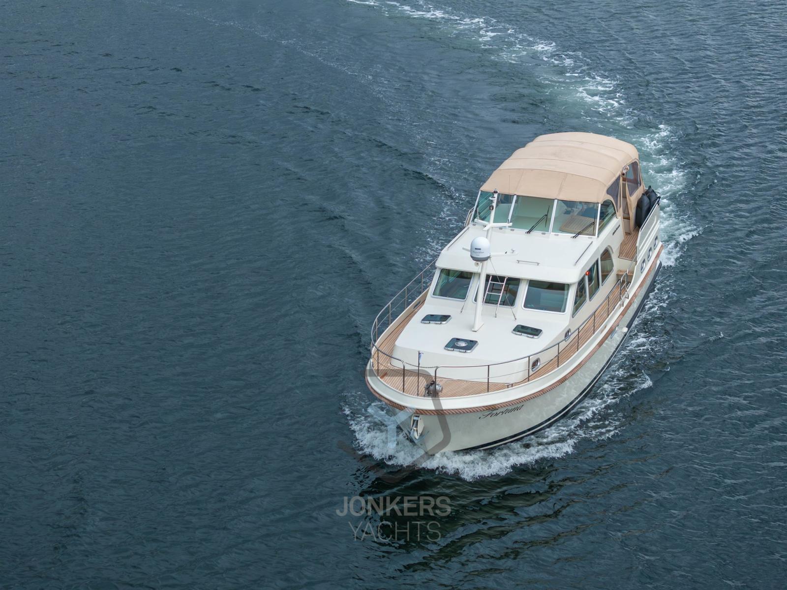 This ship has teak on aft deck, gunwales and foredeck, autopilot, chartplotter, hot-air outlets in the outside helm station, refrigerator drawer as extra in saloon, indirect lighting etc.