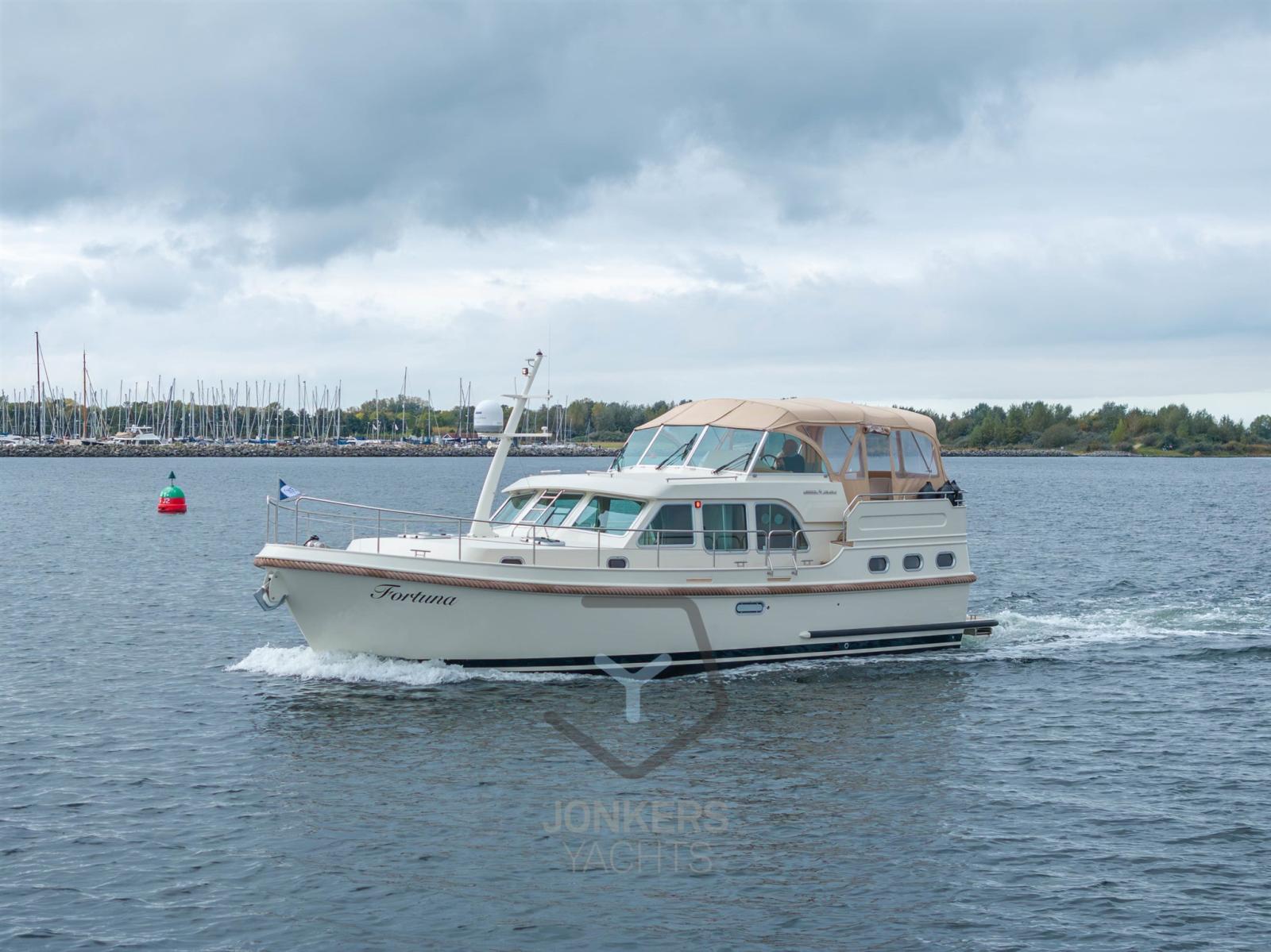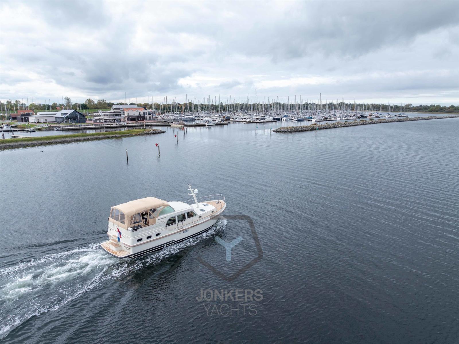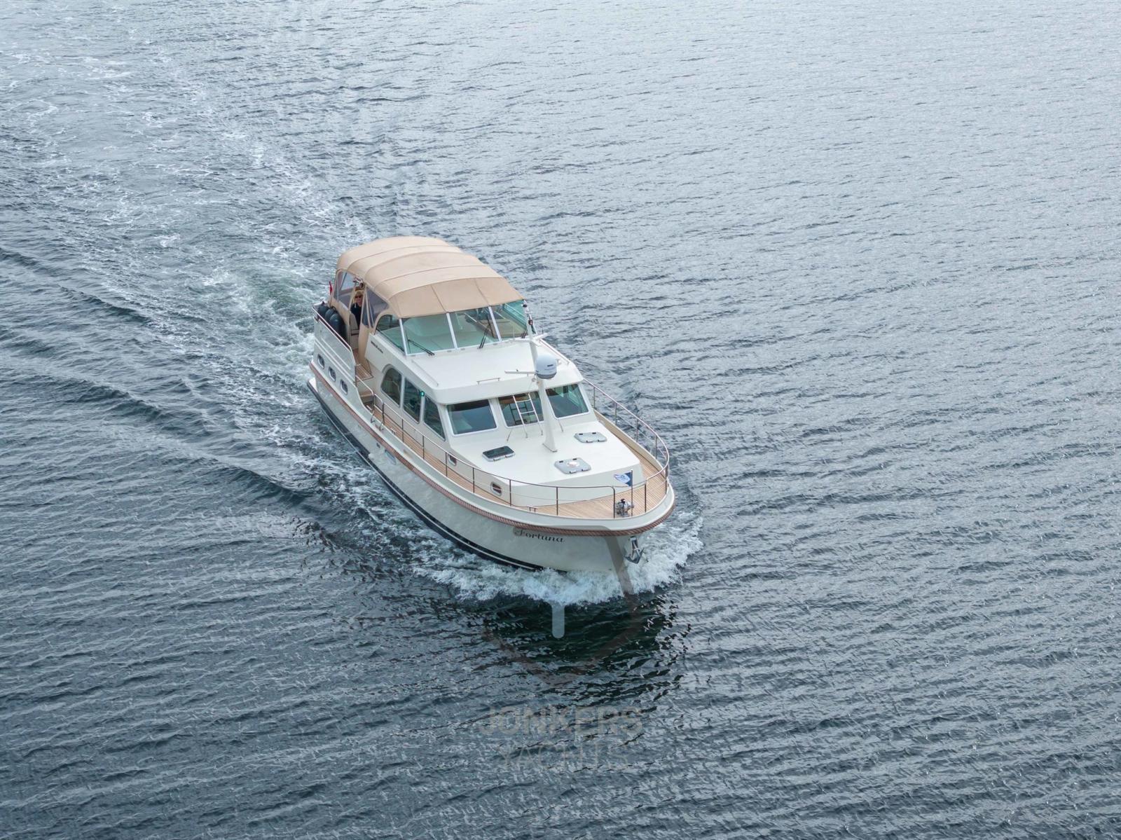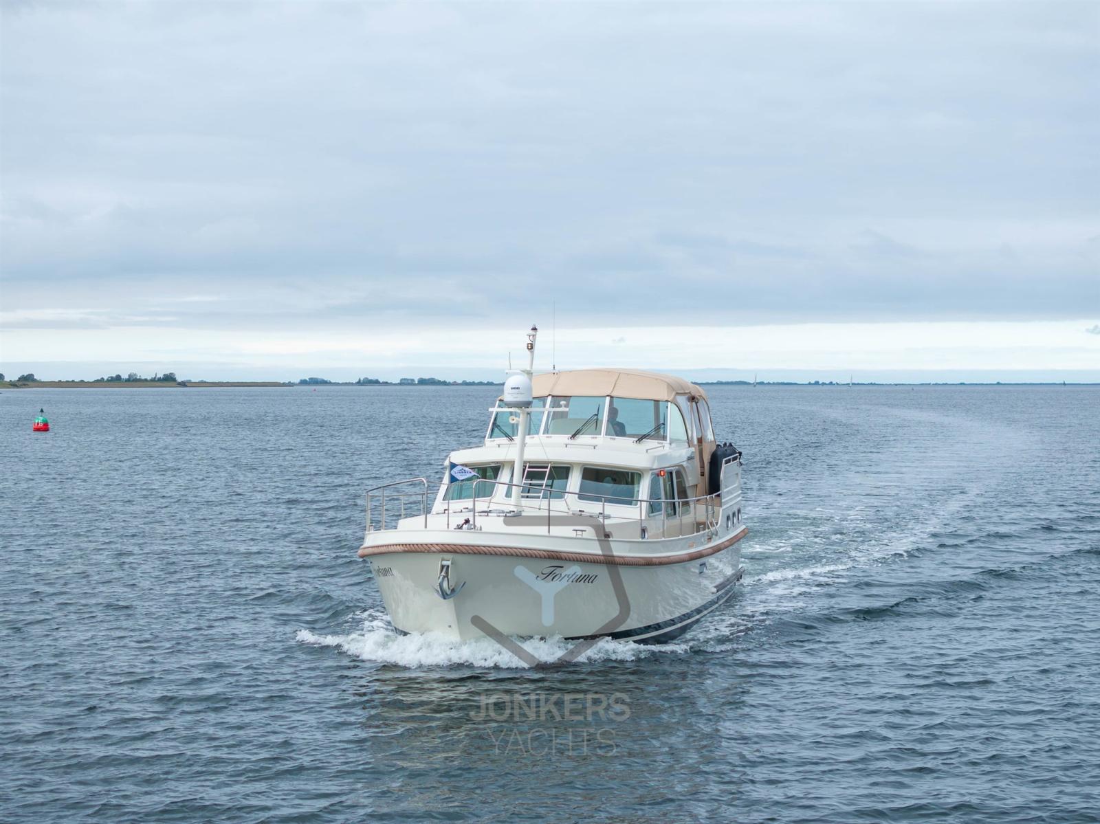 This ship has teak on aft deck, gunwales and foredeck, autopilot, chartplotter, hot-air outlets in the outside helm station, refrigerator drawer as extra in saloon, indirect lighting etc.