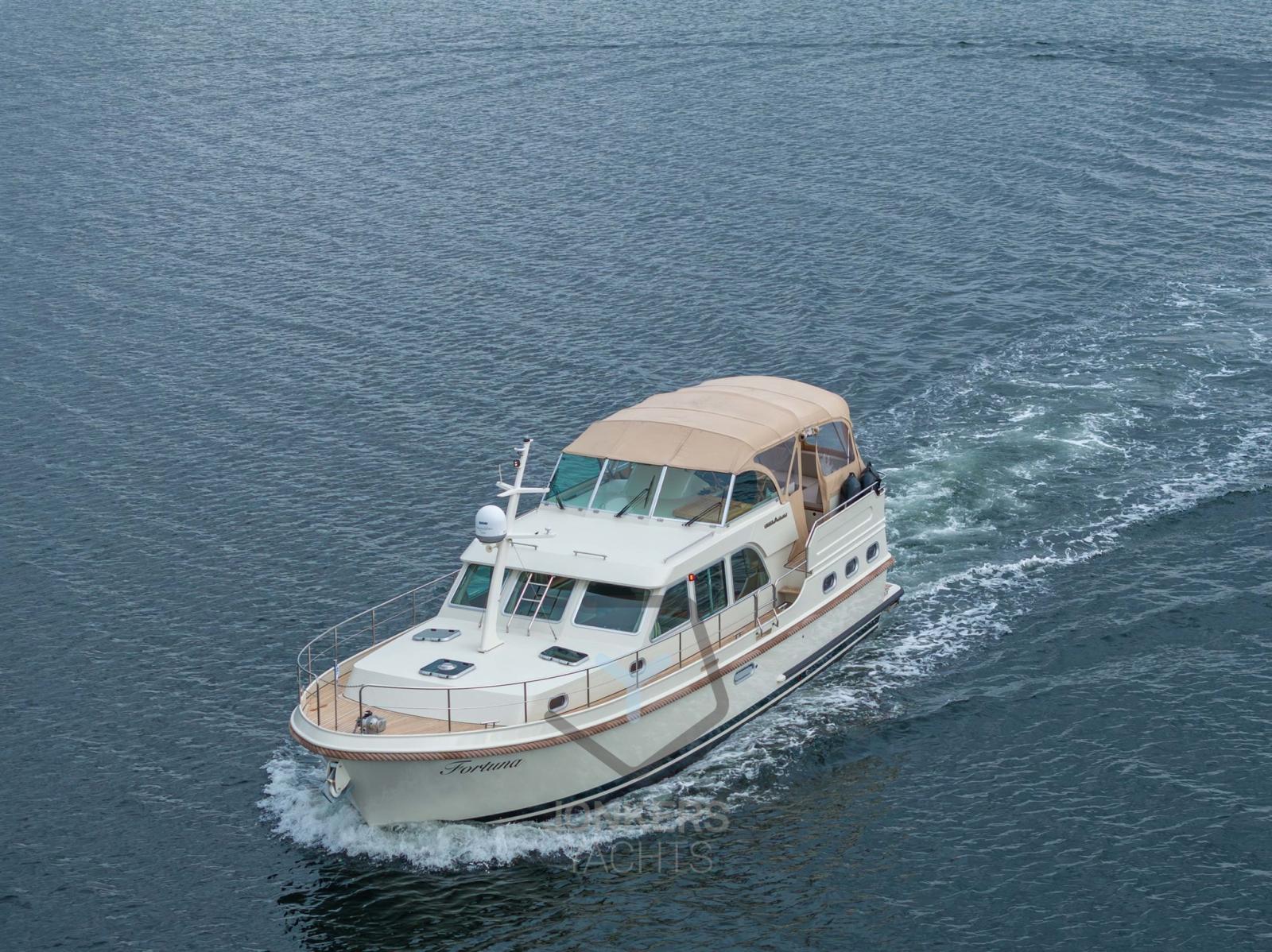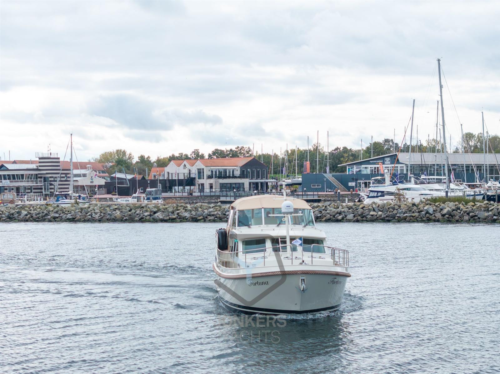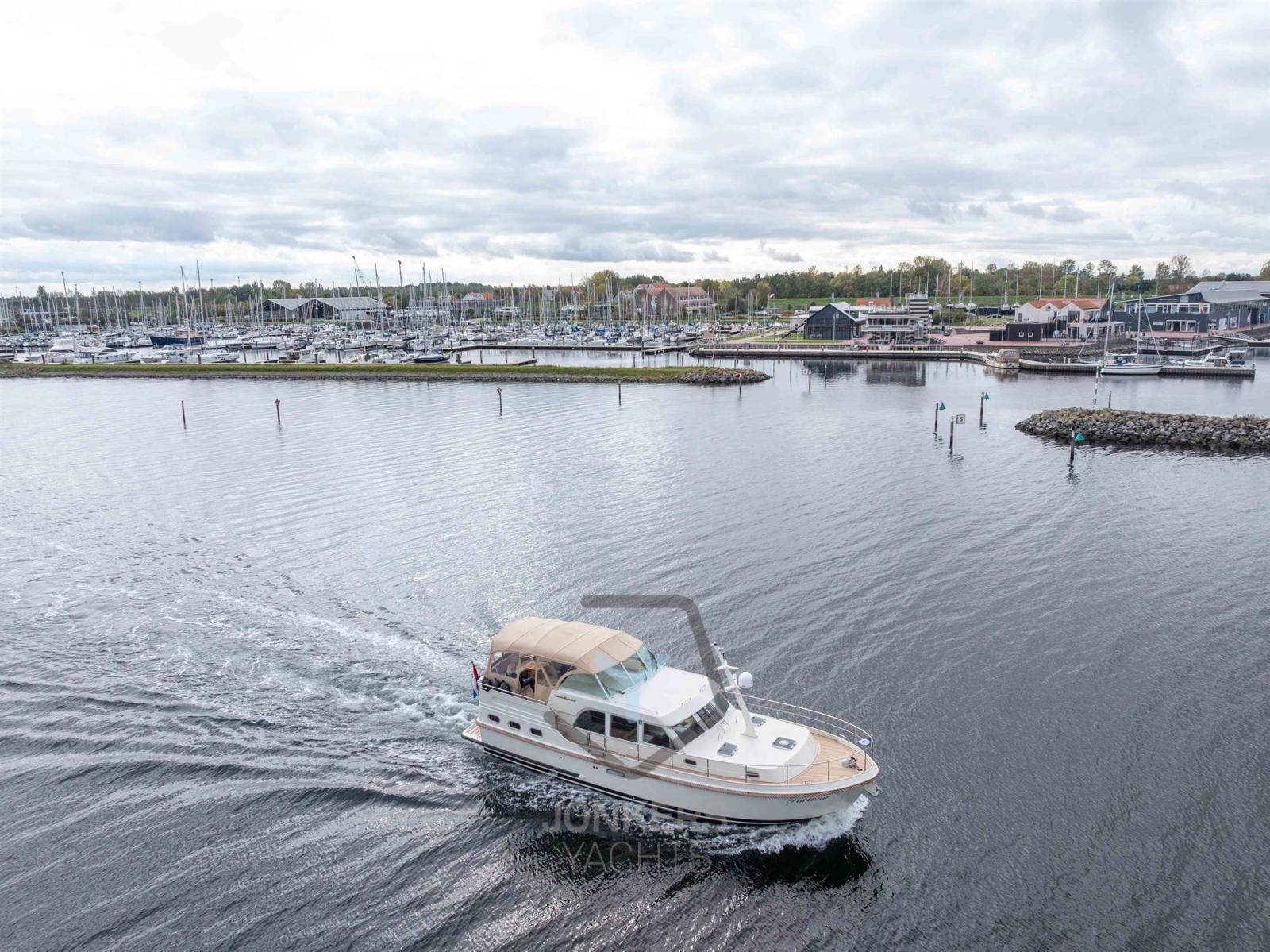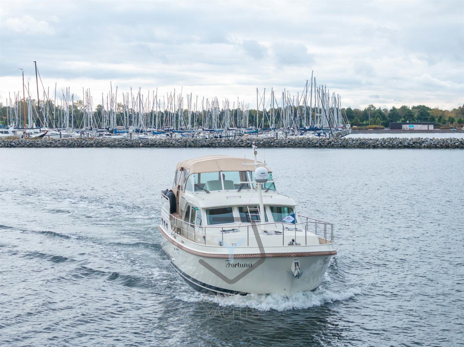 This ship has teak on aft deck, gunwales and foredeck, autopilot, chartplotter, hot-air outlets in the outside helm station, refrigerator drawer as extra in saloon, indirect lighting etc.