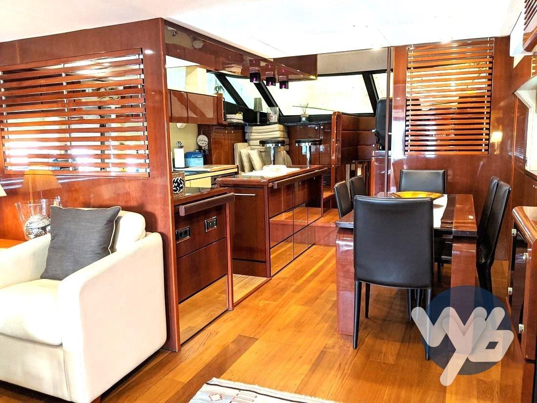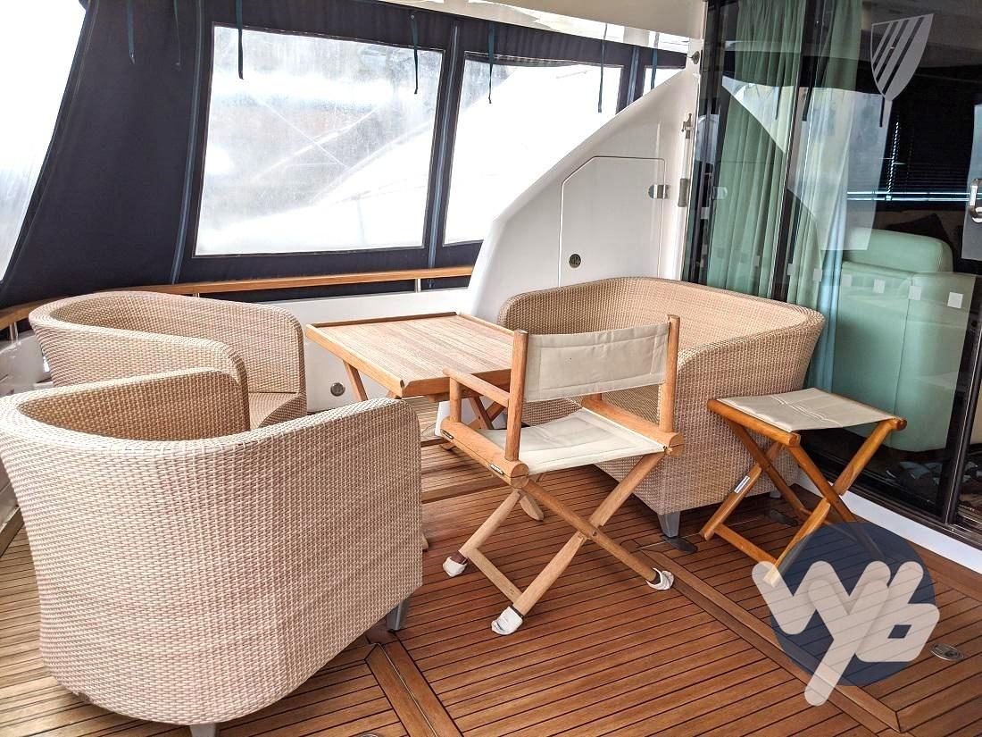TEAK COCKPIT. TEAK FLY BRIDGE. UNDERWATER LIGHTS. AFT HANGAR FOR DINGHY. AVON 320 JET TENDER. TEAK PARQUET FLOOR. BESENZONI SEATS ELECTRIC ADJUSTMENT. RETRACTABLE TELEVISION
