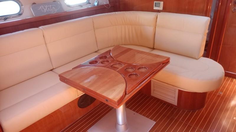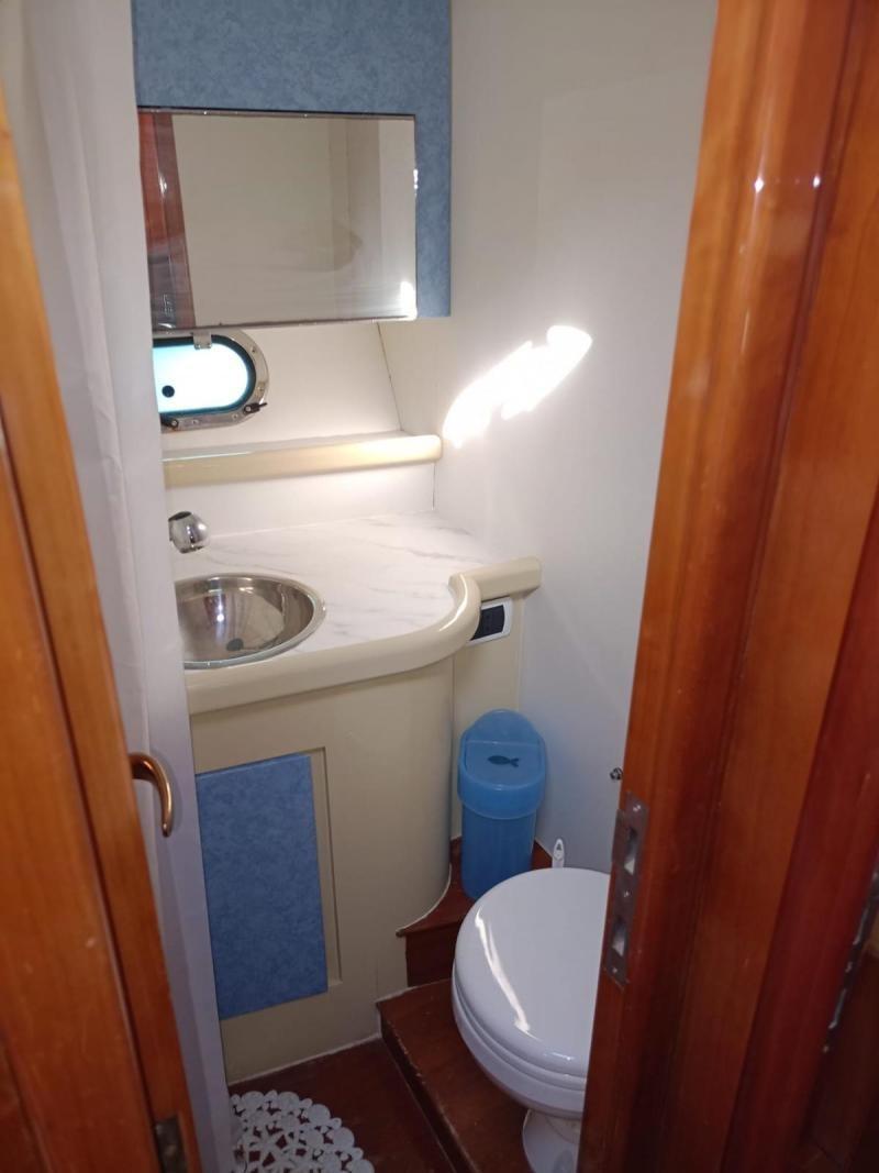 The AIRON MARINE 425 is well equipped with: bow thruster, generator, hot/cold air conditioning, autopilot, hydraulic gangway, oversize swim platform, electric hard-top, Raymarine electronics with 2 GPS devices, equipped kitchen (induction hob, microwaves, oven, fridge), bimini-top, Hi-Fi system with outdoor speakers. Always very well maintained, in 2024 the cushions were replaced, interior woods were overhauled, and the WC was replaced. In 2022, a complete refit was carried out, which included: hull & superstructure repainting in light grey, a new motorized hard-top, extension of the aft swim platform, a new awning, replacement of seacocks and batteries, refurbishment of the cockpit kitchen with a new fridge, and thruster balancing. In 2021, the engines were removed and overhauled. In 2020, a new Raymarine GPS with updated cartography was installed. Excellent condition, ready to cruise. - Check the full brochure, the video and the sea trial on our Web site MEDIA SHIP