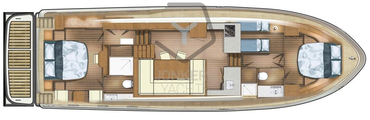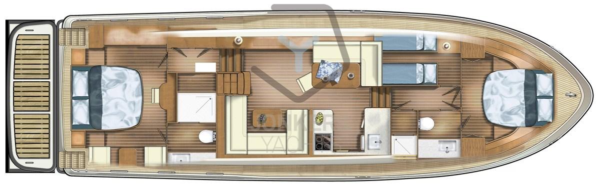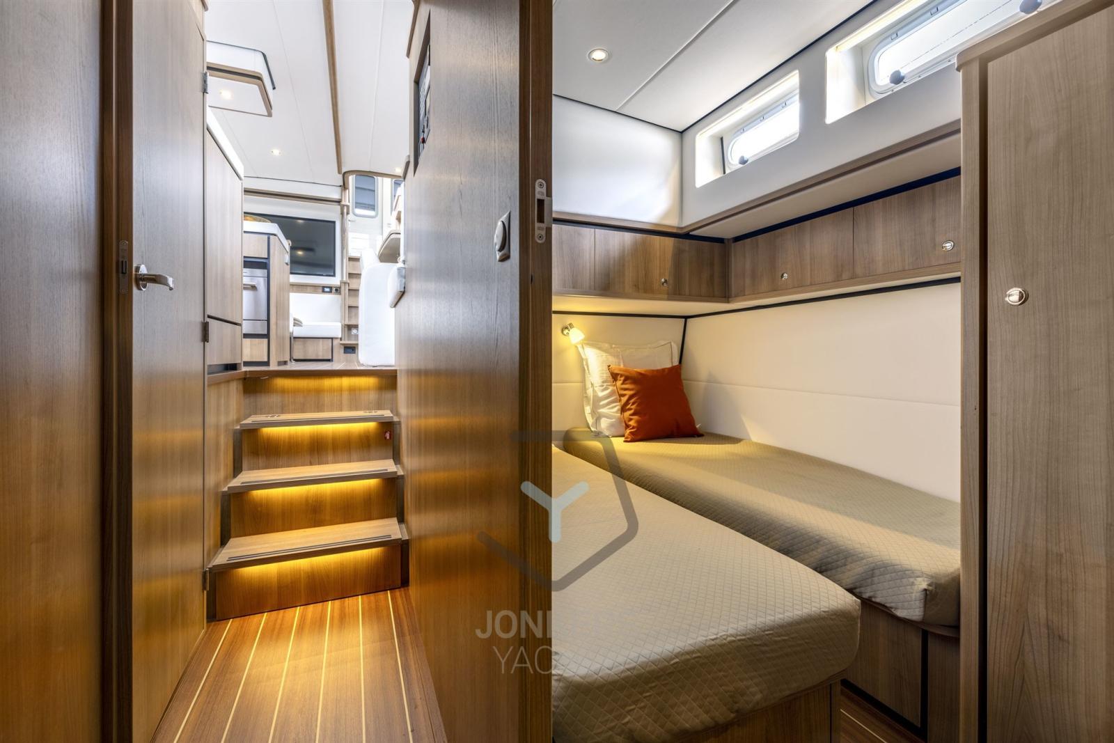 Enjoy smooth and quiet cruising thanks to optimized engine performance and excellent soundproofing in the engine room. The INTERO interior design offers you an oasis of comfort and luxury, with spacious living areas, thoughtful layout and high-quality details that create a relaxing atmosphere on board.