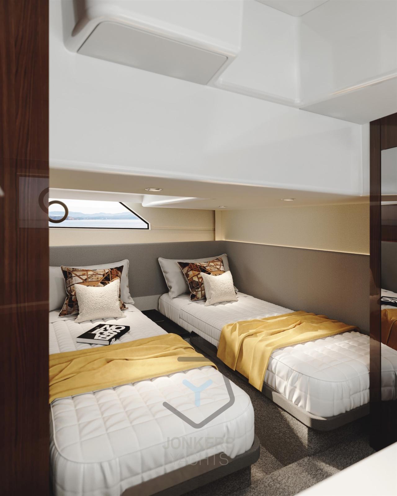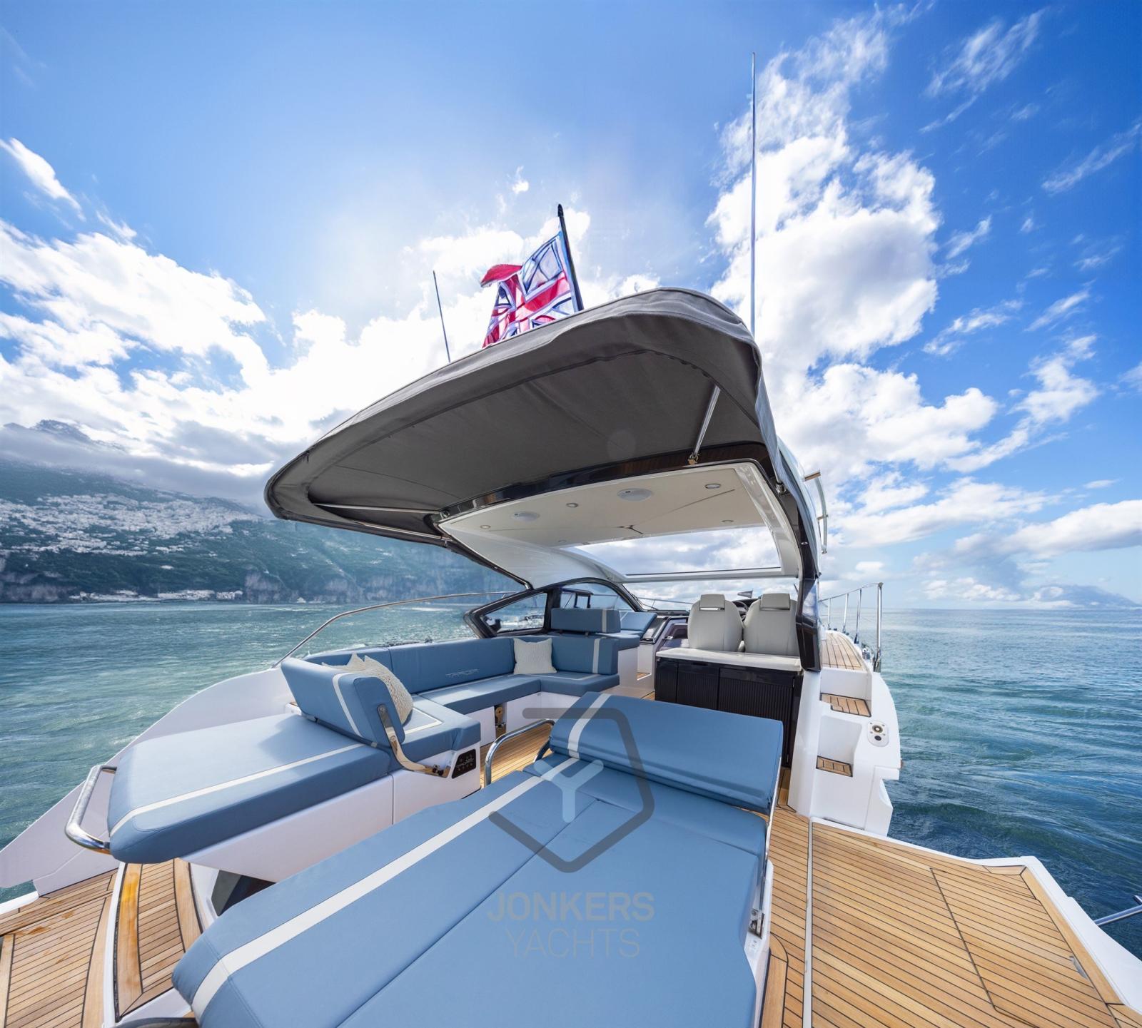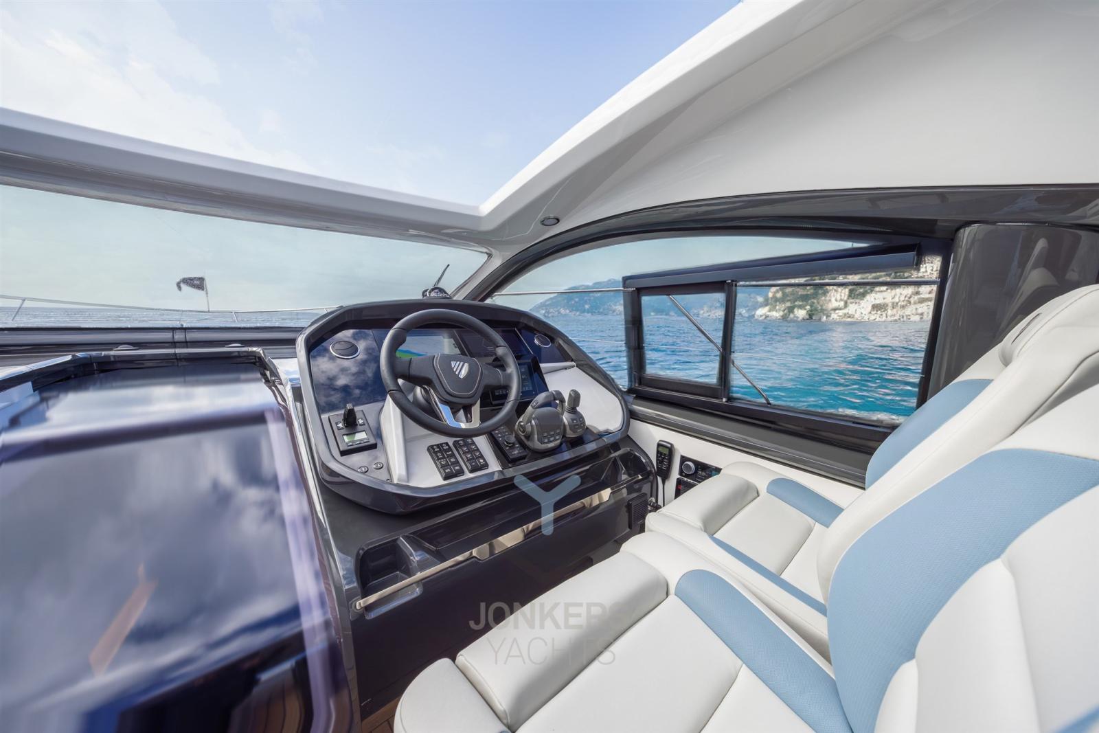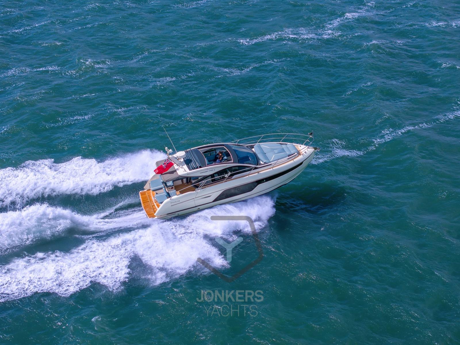 The Targa 40's sleek hardtop design exudes elegance and craftsmanship, with every detail carefully designed to create a sense of luxury and comfort. Enjoy an open cockpit with a power sunroof, allowing you to switch effortlessly between shelter and sun-drenched fun. The interior is spacious and bright thanks to large windows with stunning water views.
