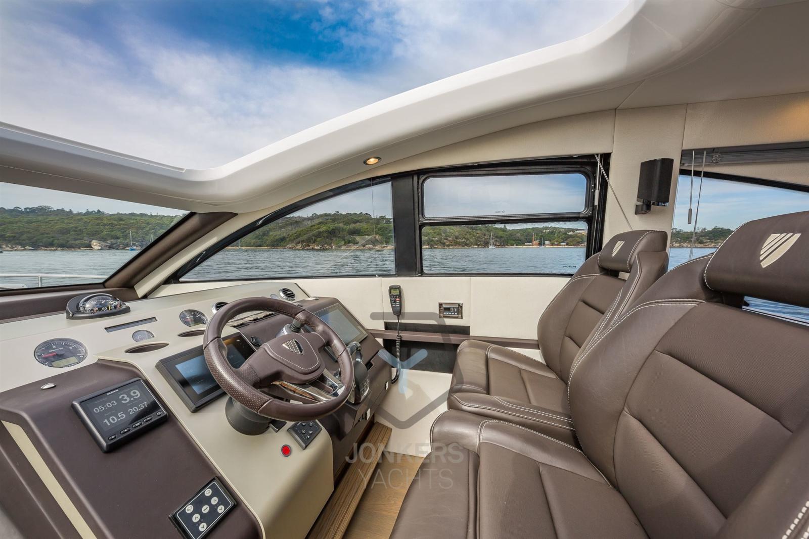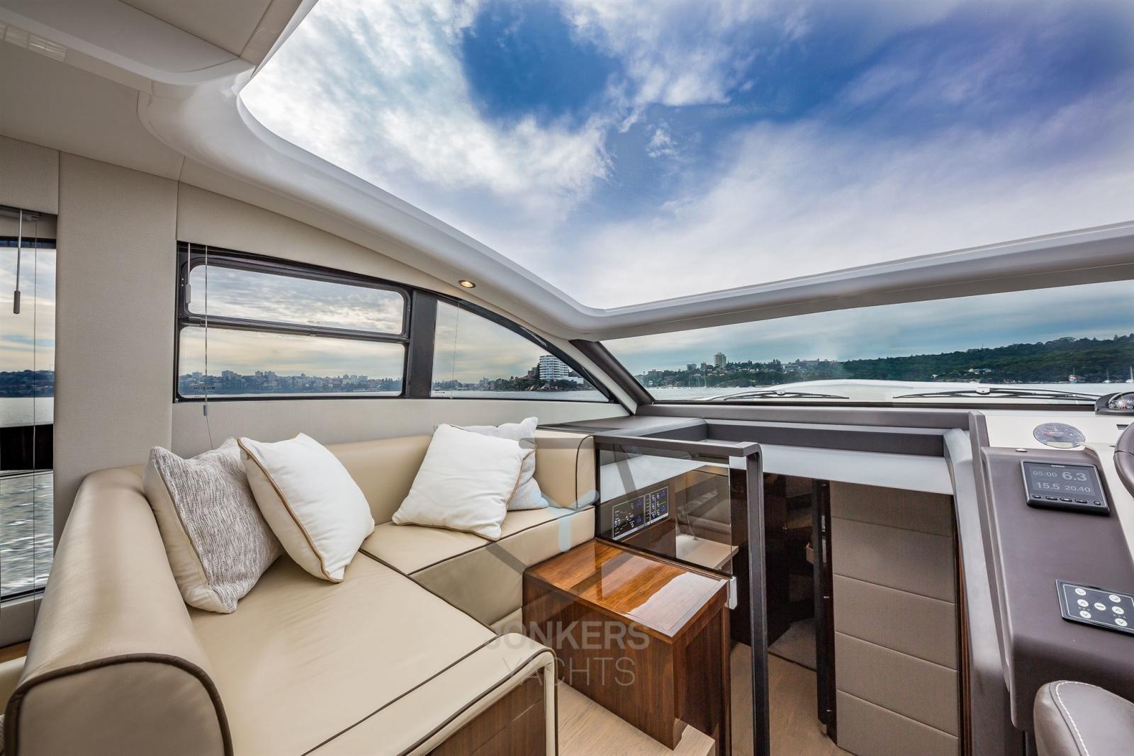 The Targa 50 GT is a spirited soul with adventure in its sights. But that doesn't mean you can't have all the luxurious touches you'd expect from a Fairline. On the inside, gorgeous oak floors, Carrara white countertops and inlays of 100% New Zealand wool carpets. And on the outside, a striking anthracite-colored roof, making this motor yacht a real beauty.