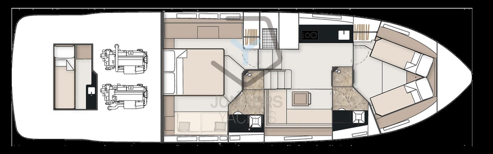 Optional motorization: 2x Volvo Penta Diesel IPS700 D8-550, 1100 HP (32 knots)