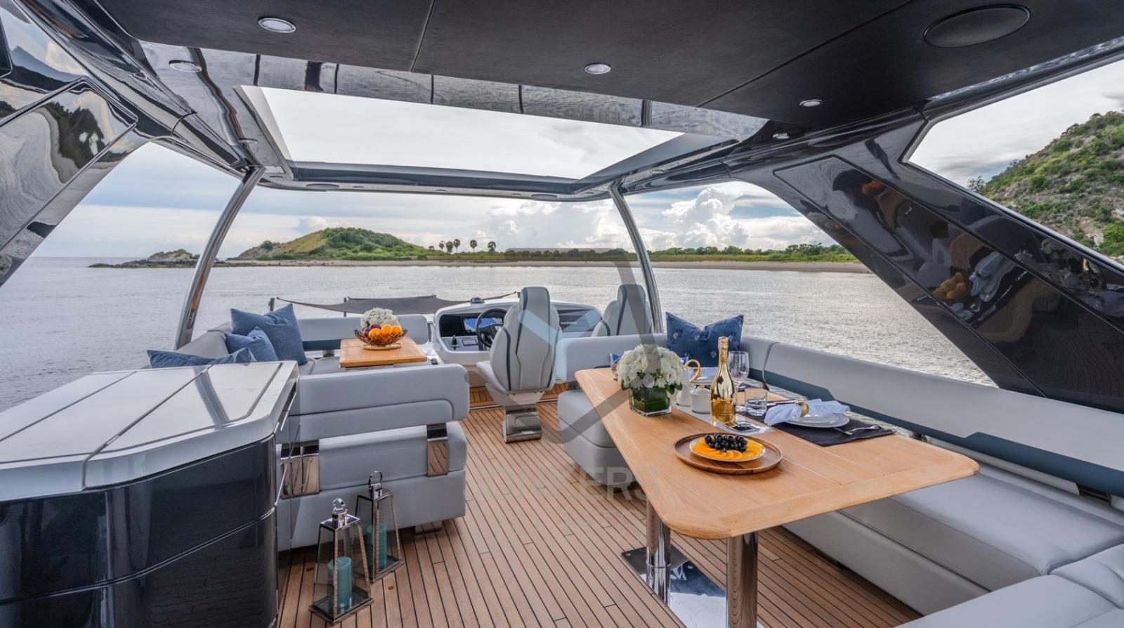 Spend all day on the expansive flybridge, with three individually decorated areas to suit your mood. From triple loungers to luxurious dining to forward seating, the Squadron 68 adapts to what you want to do, when you want to do it. Whether you're anchored or sailing offshore, customize your surroundings to enhance your experience, just the way you want it.