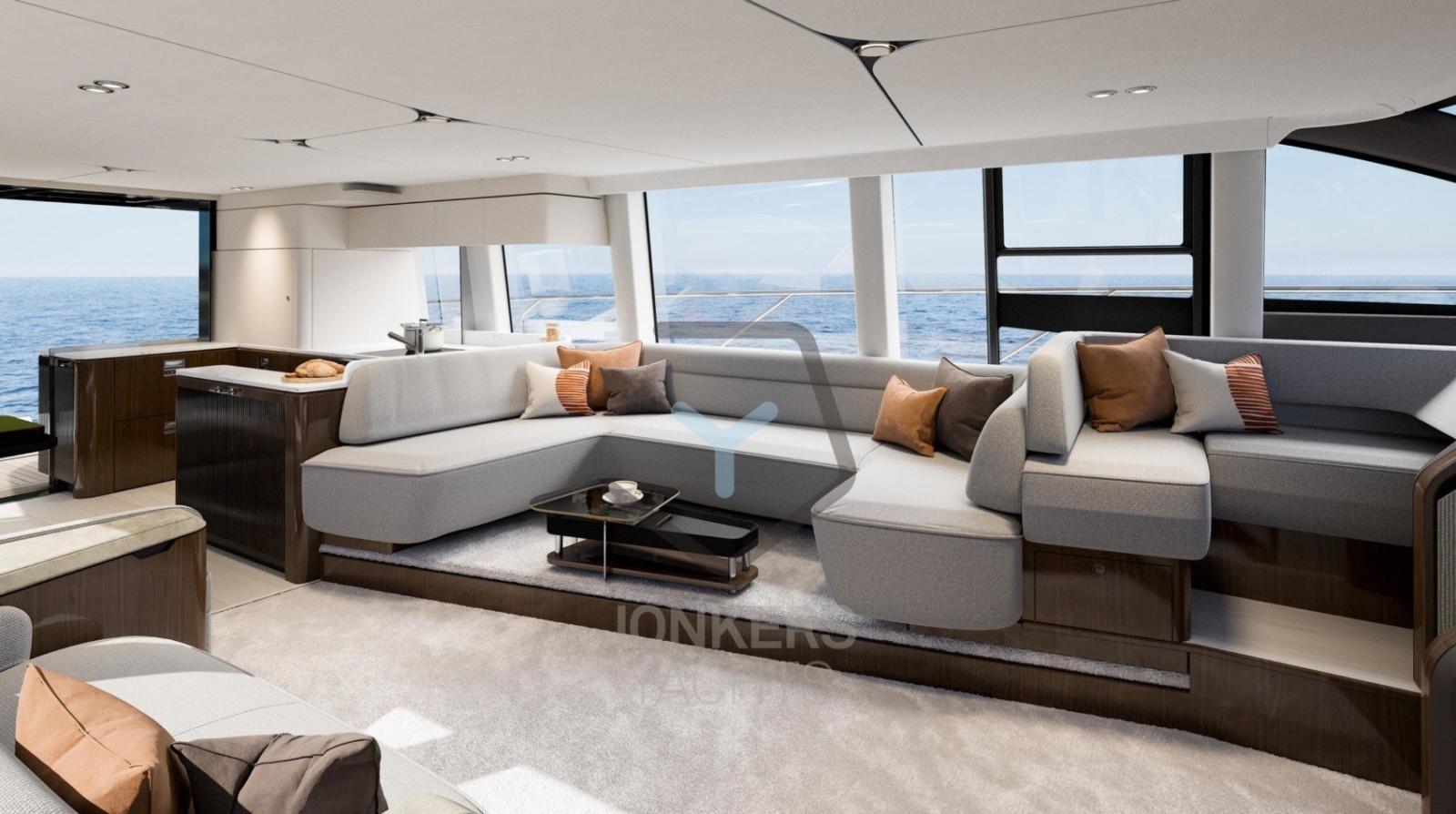 Racing to new destinations is what the elegant Squadron 68 is designed for. Enjoy your surroundings from the elevated flybridge, with the wind in your face and the horizon all around you. Dine with friends in the single-level salon, served from the well-equipped galley. Lightness, space and fluid design make time above or below deck both graceful and flowing.