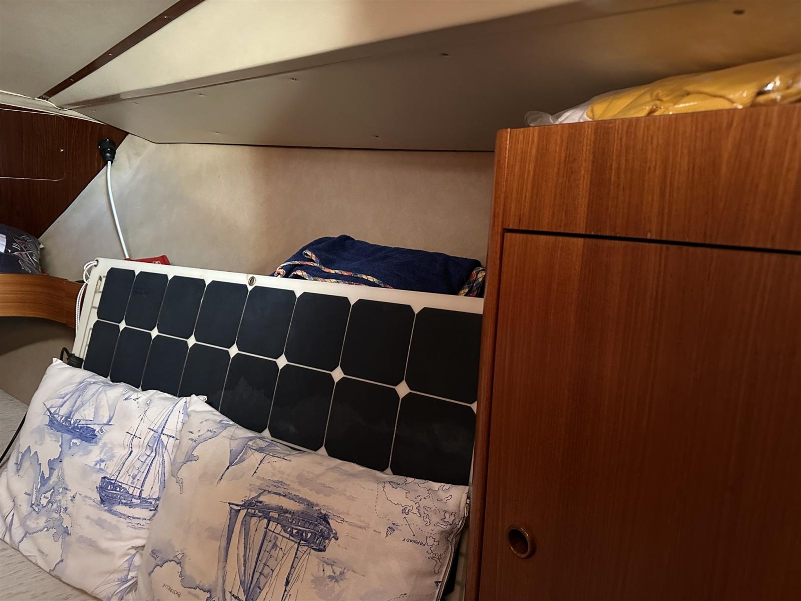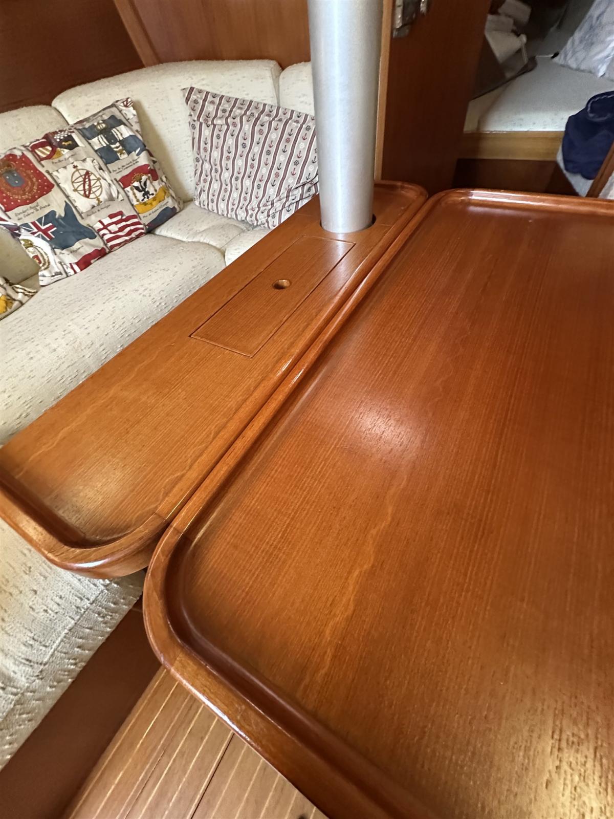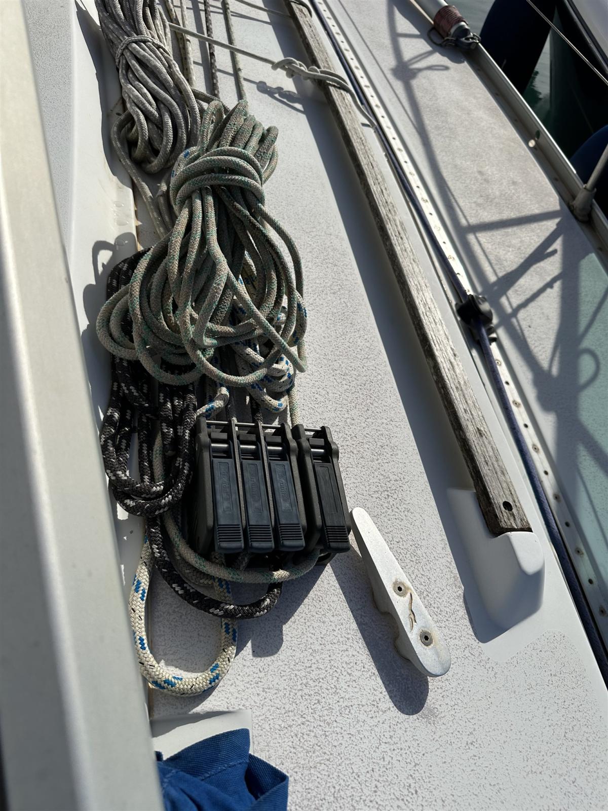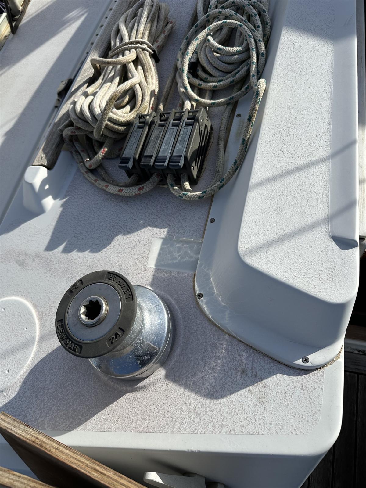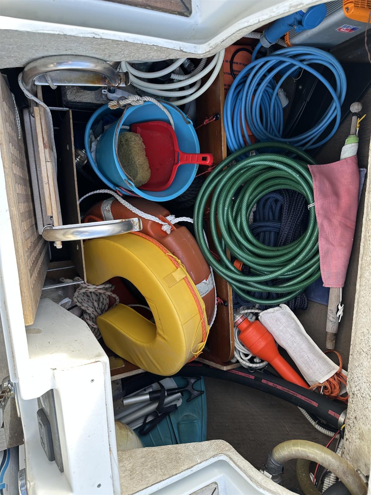 Engine Alarm, Anchor (CQR), Water pressure pump, Life Raft (Da revisionare 8 pax), 3 Batteries (2 nuove 1 funziona vecchia), Shore power cable, Deck Shower, Auxiliary Engine (HONDA 2 va tagliandato), 2 Solar panels (SOLBIAN), 8 Fenders (Compreso 2 a palla), Gangway, Platform, Manual Bilge Pump, Teak Cockpit (CON CARABOTTINO), Shorepower connector, Voltage Rectifier, Electric Windlass, Strand rigging (RIFATTO 2018), swimming ladder, Outboard Engine Support Bracket, Tender (ZODIAC), 5 Winch (2 PRIMARI, 2 X DRIZZE , 1 ALL’ALBERO).