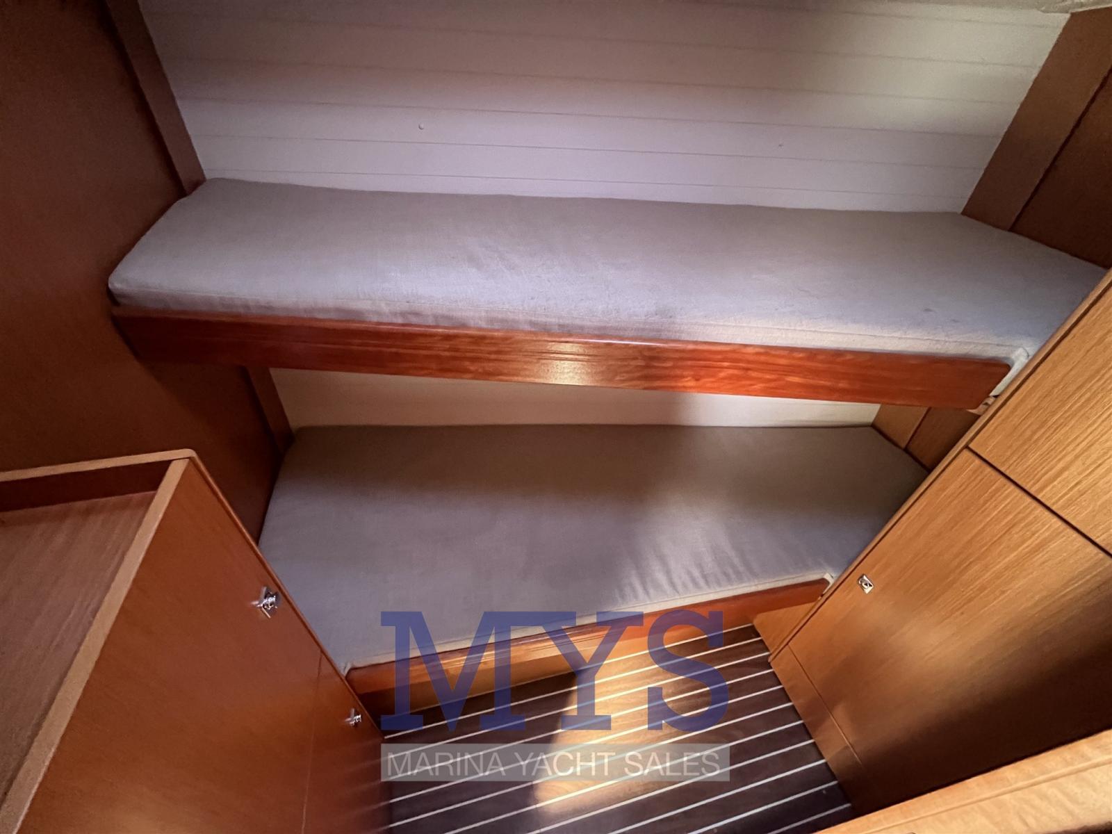 1 cabin with bunk beds forward on port side