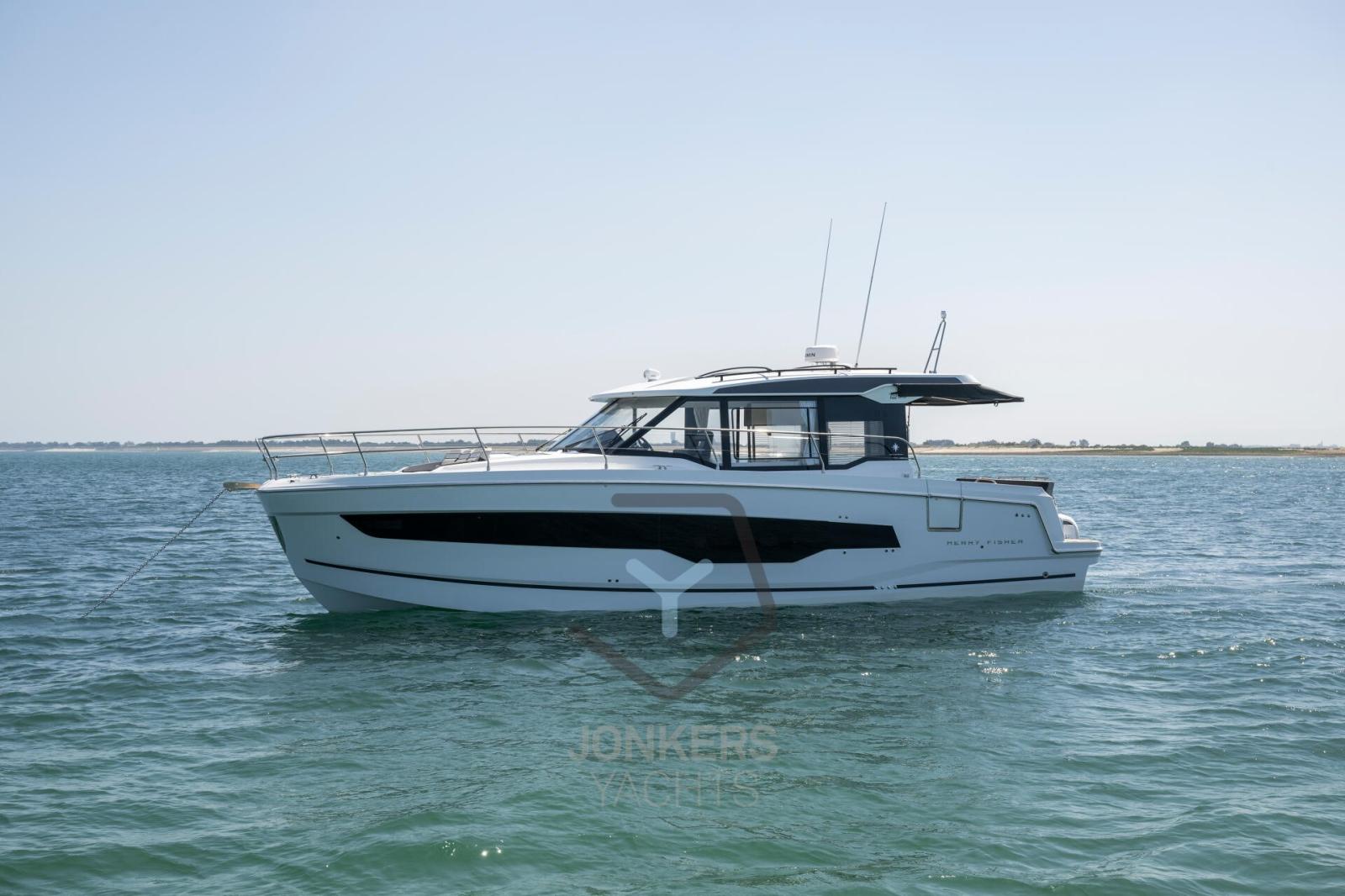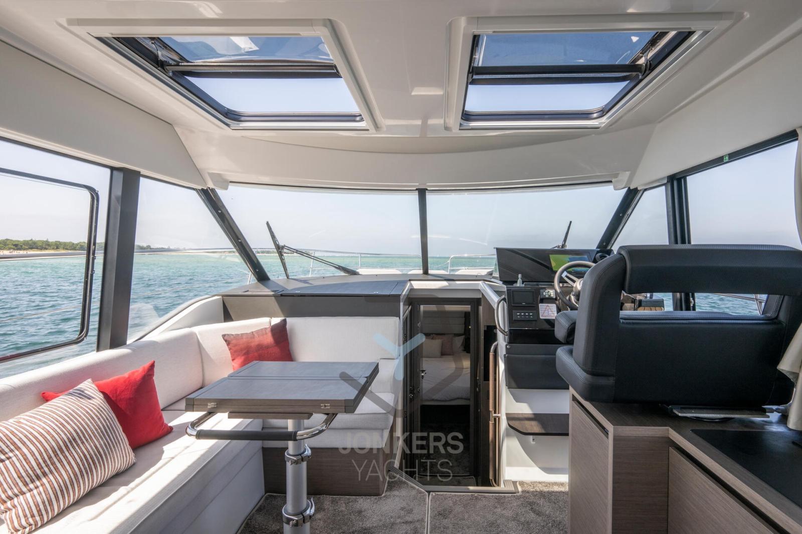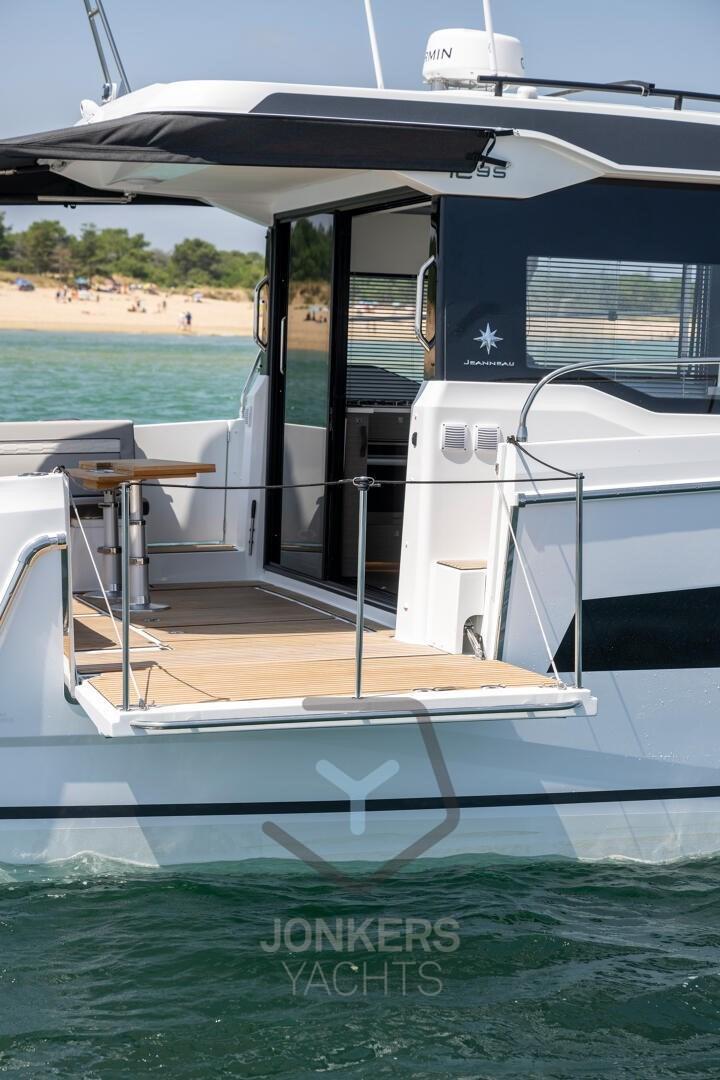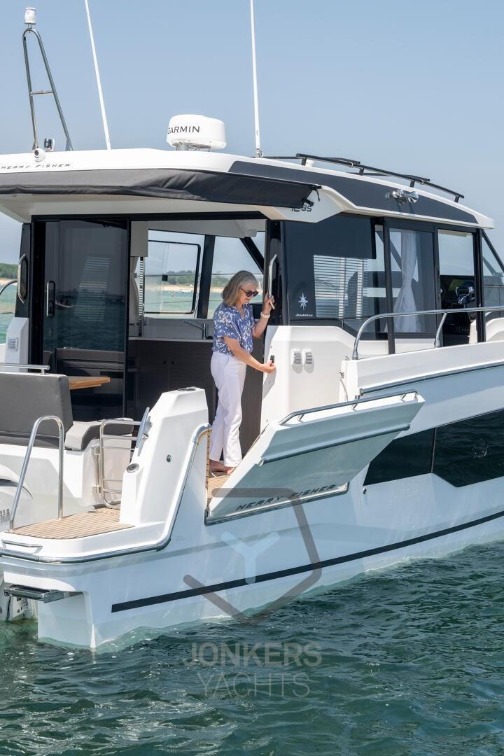 This Merry Fisher 1295 Fly features multiple living spaces designed specifically for relaxing with family and friends. Plenty of time for swimming and moments with your feet dangling in the water from the aft cockpit, with the electric deck on the starboard side. To port, a large side door facilitates access for everyone on board.
