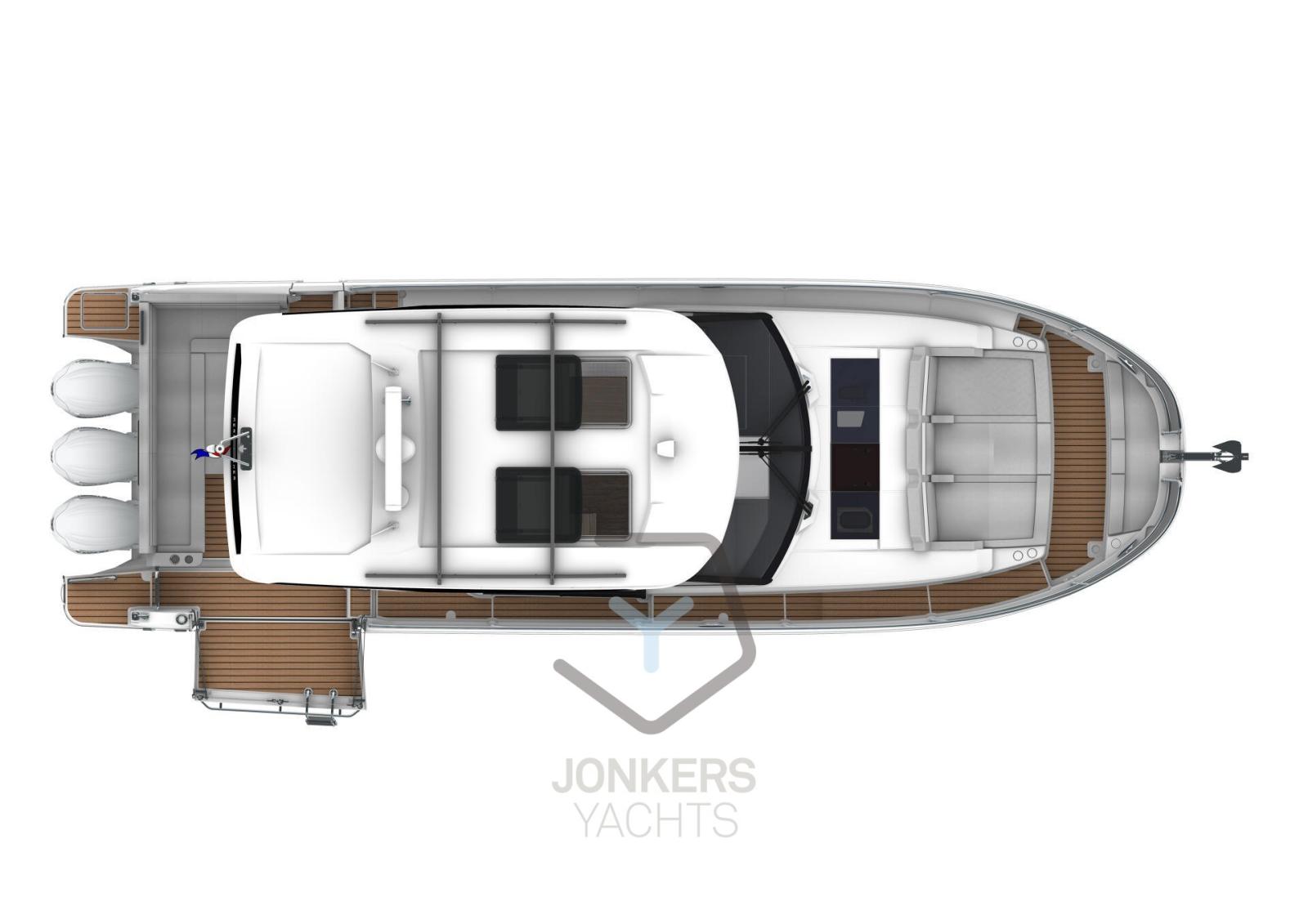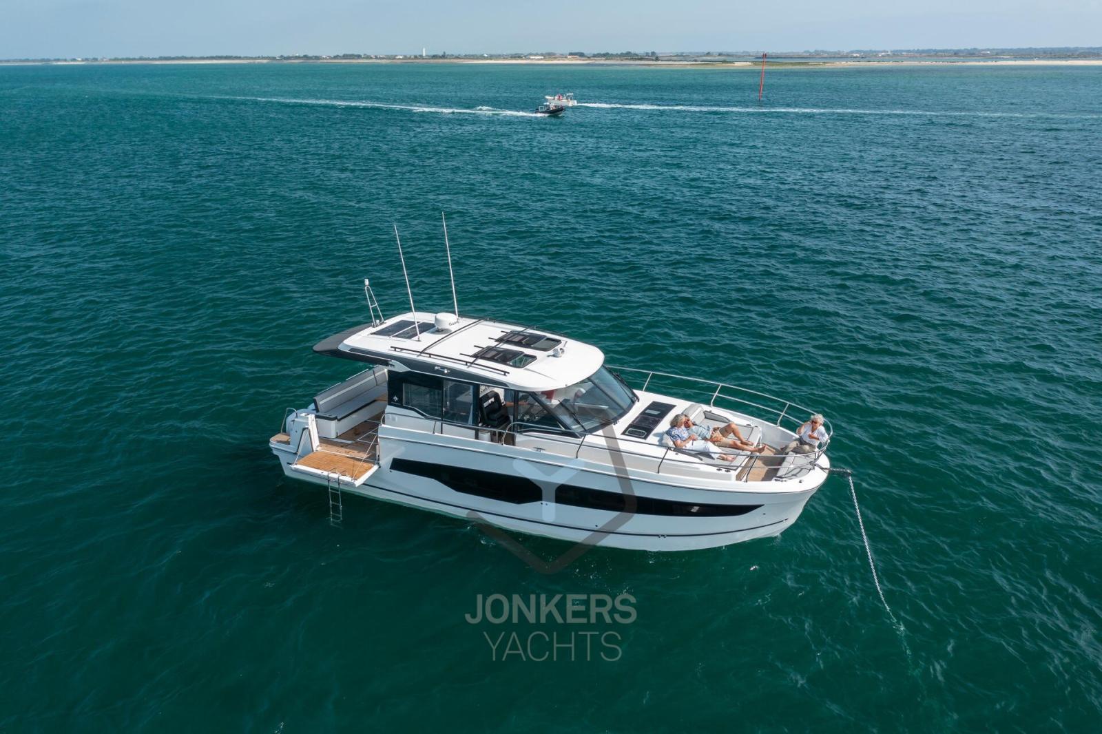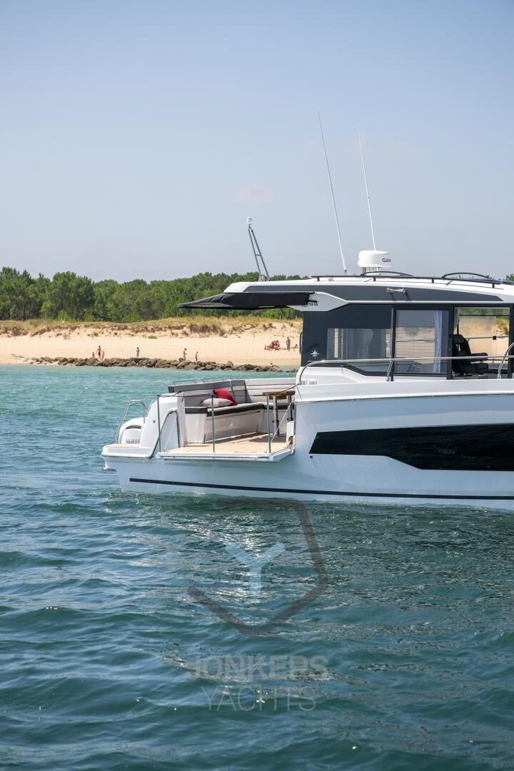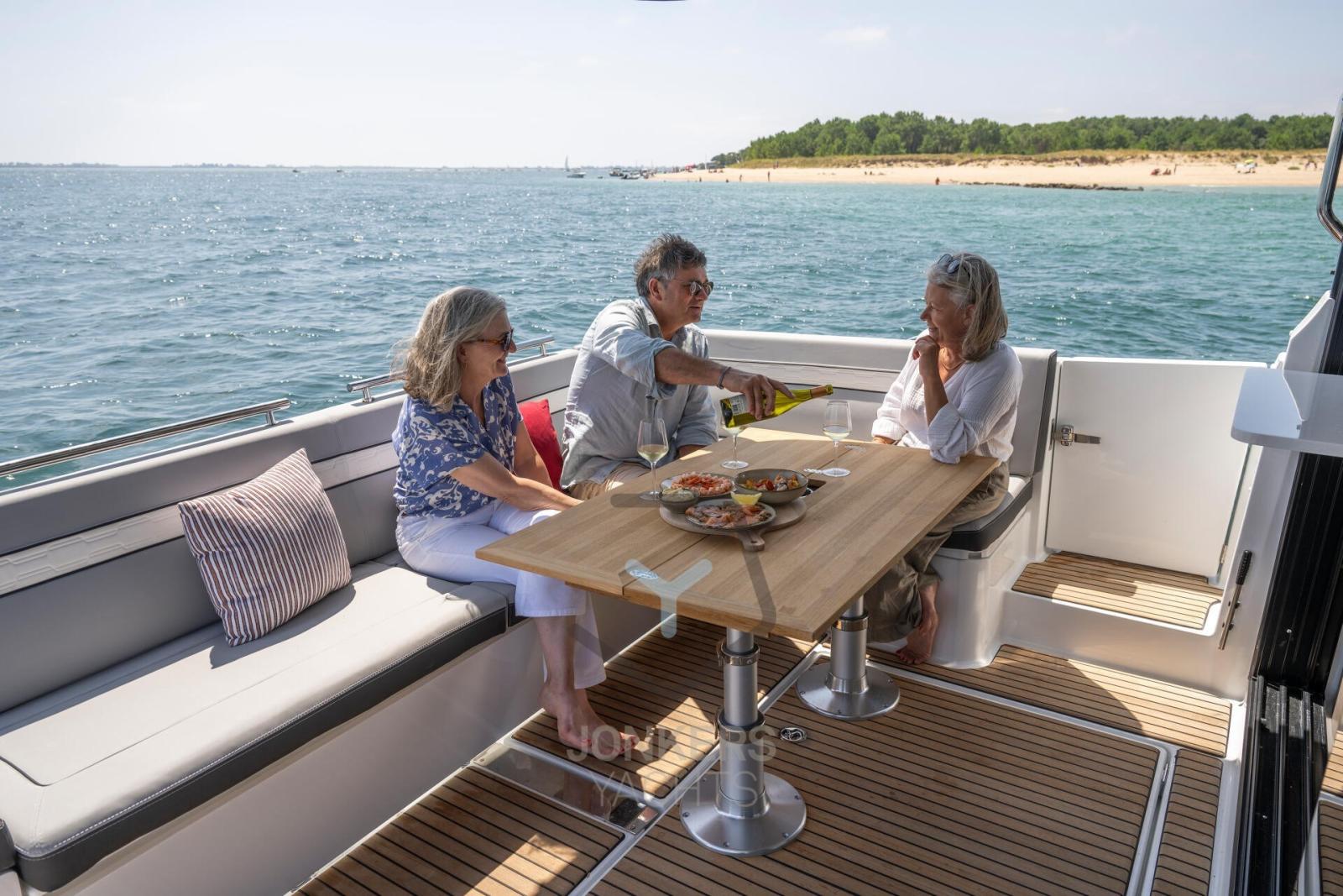 This Merry Fisher 1295 Fly features multiple living spaces designed specifically for relaxing with family and friends. Plenty of time for swimming and moments with your feet dangling in the water from the aft cockpit, with the electric deck on the starboard side. To port, a large side door facilitates access for everyone on board.