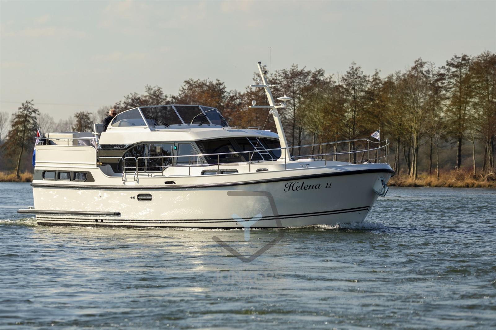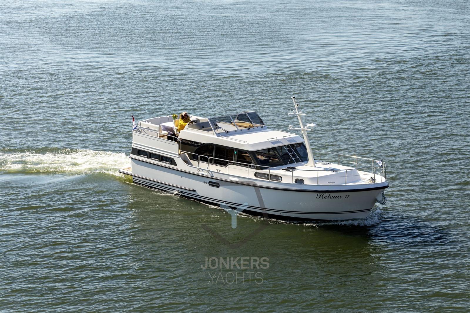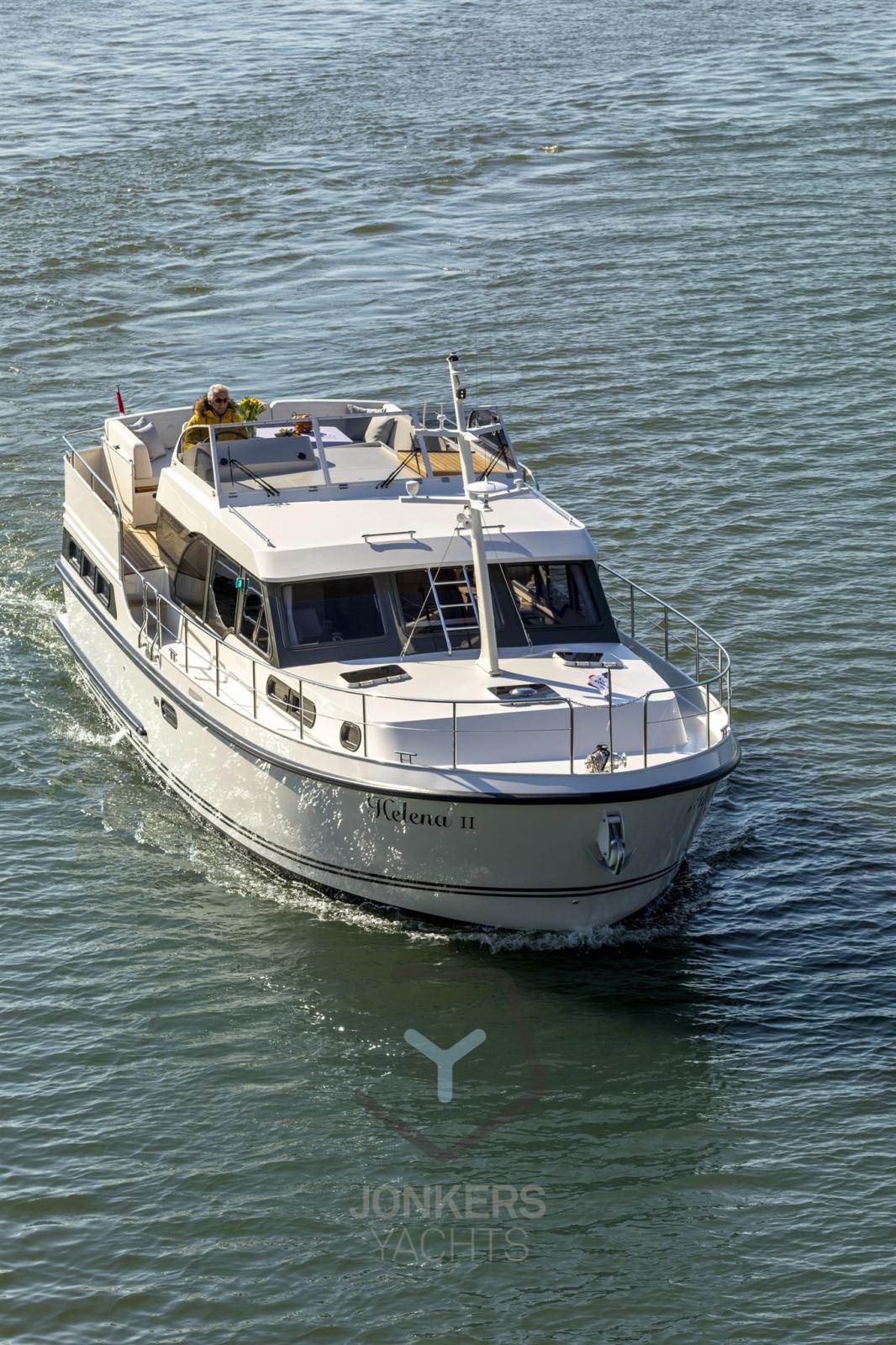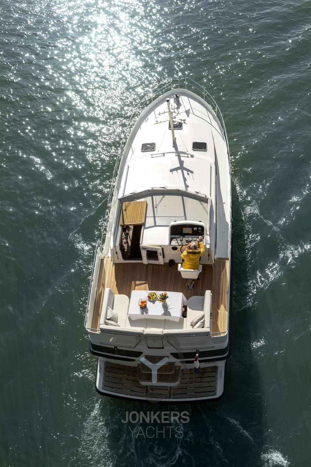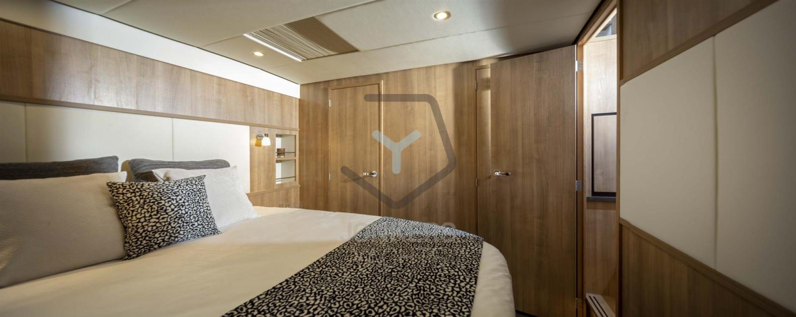 A spacious saloon with L-shaped bench seat (with Easy Sleep Convert System) and spacious galley on starboard side. Dinette with cupboard on port side. Forward cabin with free-standing twin bed and cupboards, toilet unit with electric toilet and separate shower room and a guest cabin with two single beds and cupboards.
