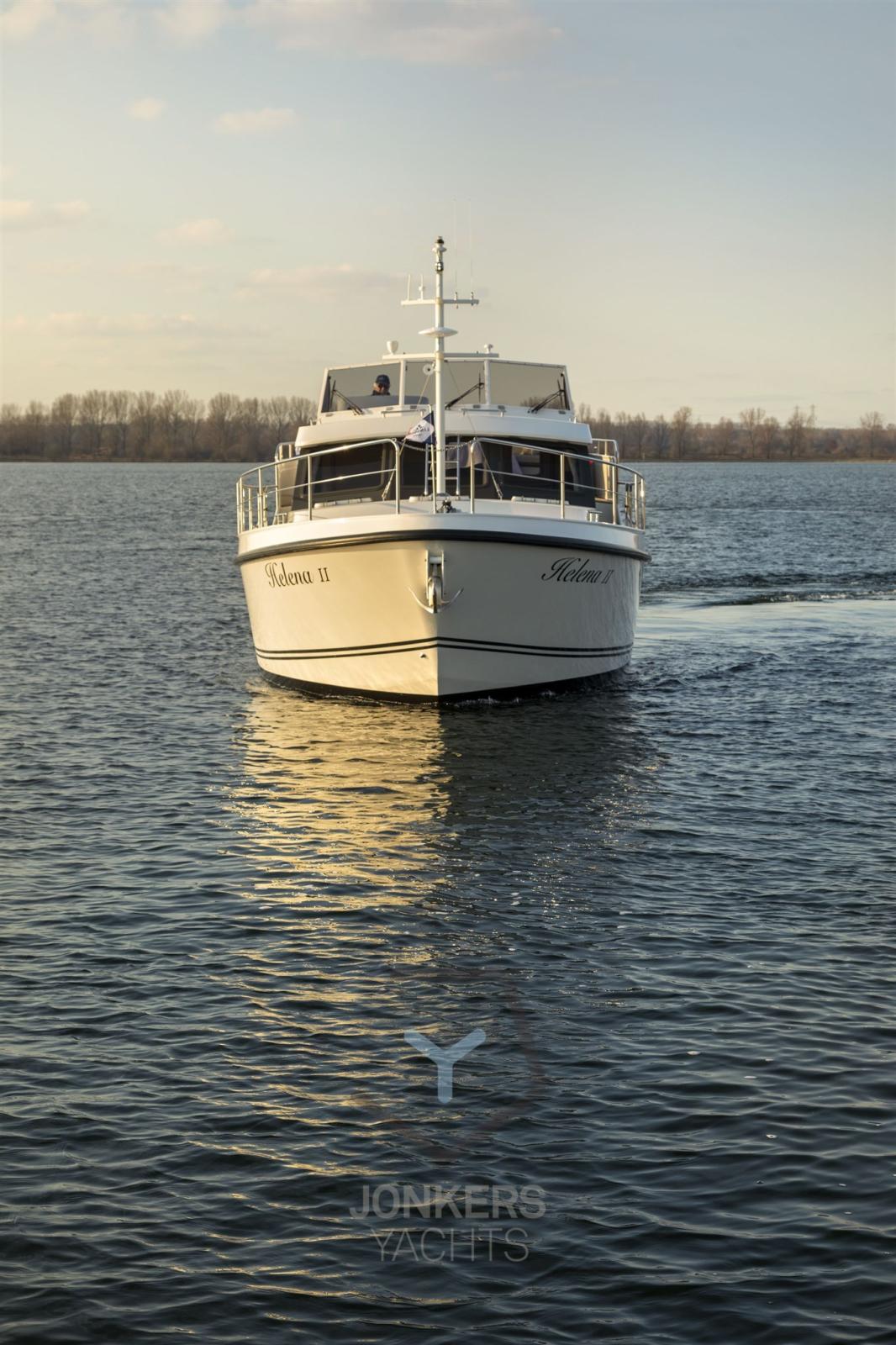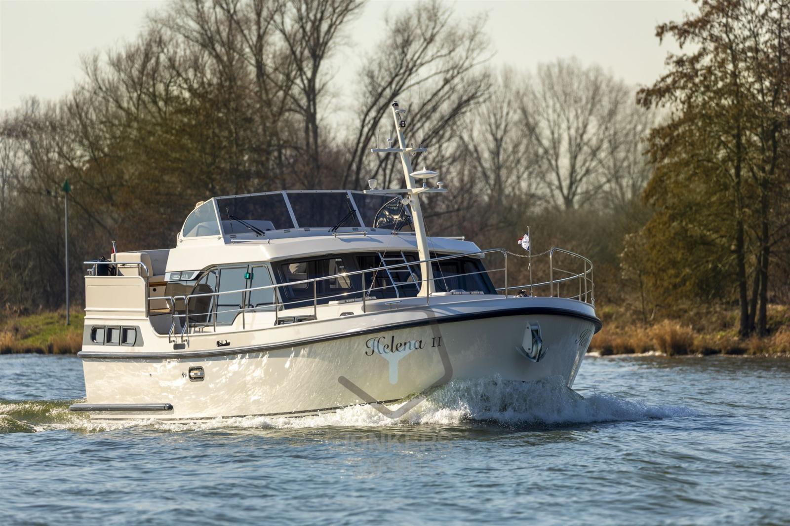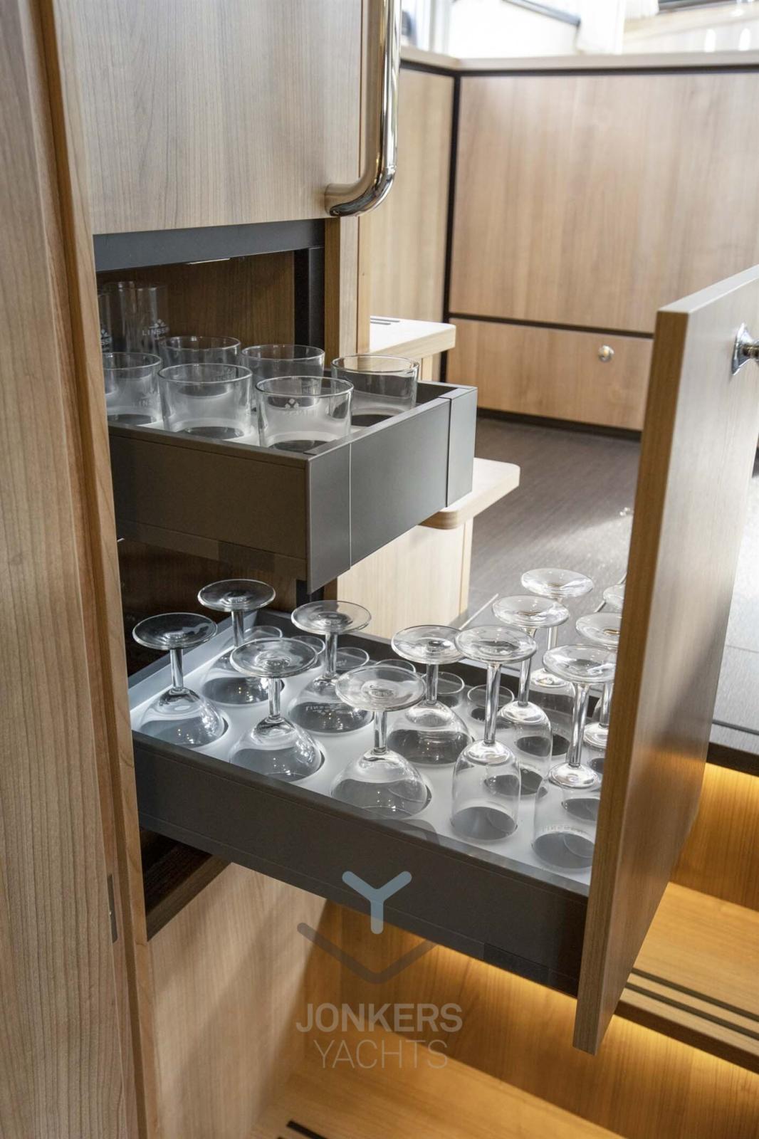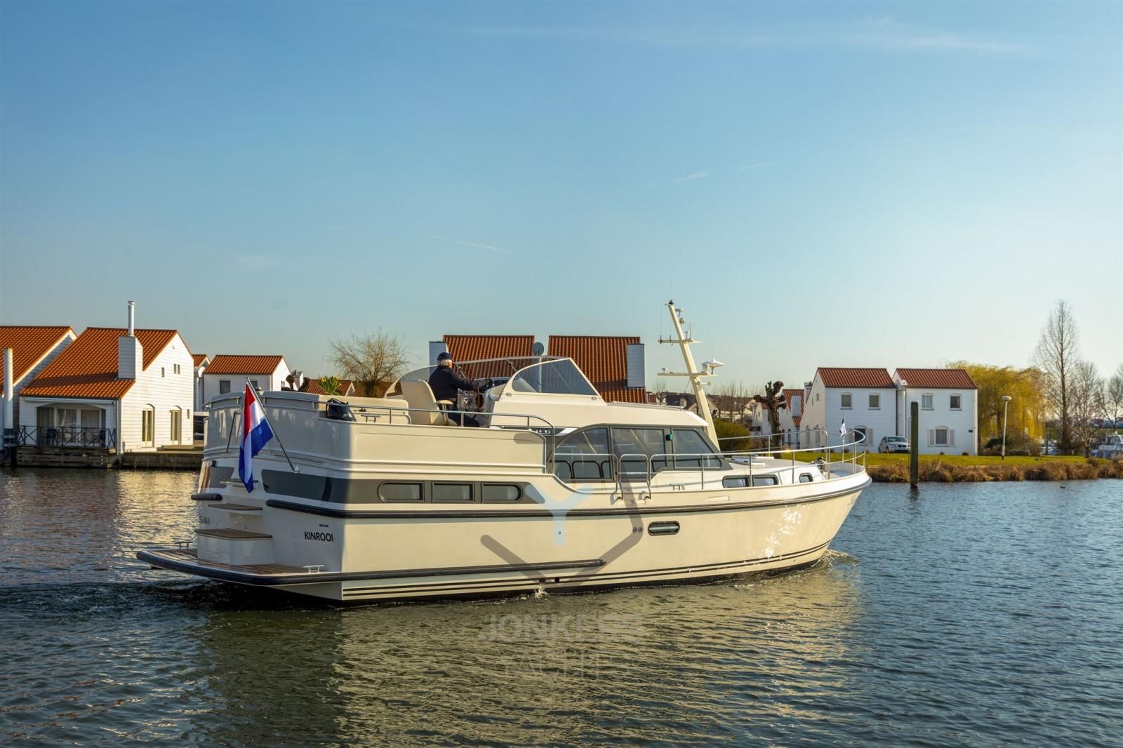 A spacious saloon with L-shaped bench seat (with Easy Sleep Convert System) and spacious galley on starboard side. Dinette with cupboard on port side. Forward cabin with free-standing twin bed and cupboards, toilet unit with electric toilet and separate shower room and a guest cabin with two single beds and cupboards.