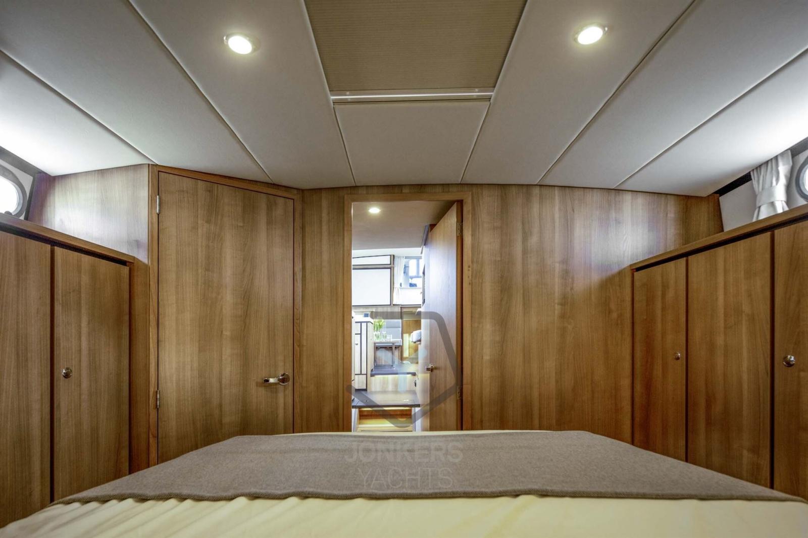This steel Linssen motoryacht 40 SL AC has an aft cabin with double bed on starboard side, toilet unit with electric toilet, washstand, shower and spacious walk-in closet unit to port.