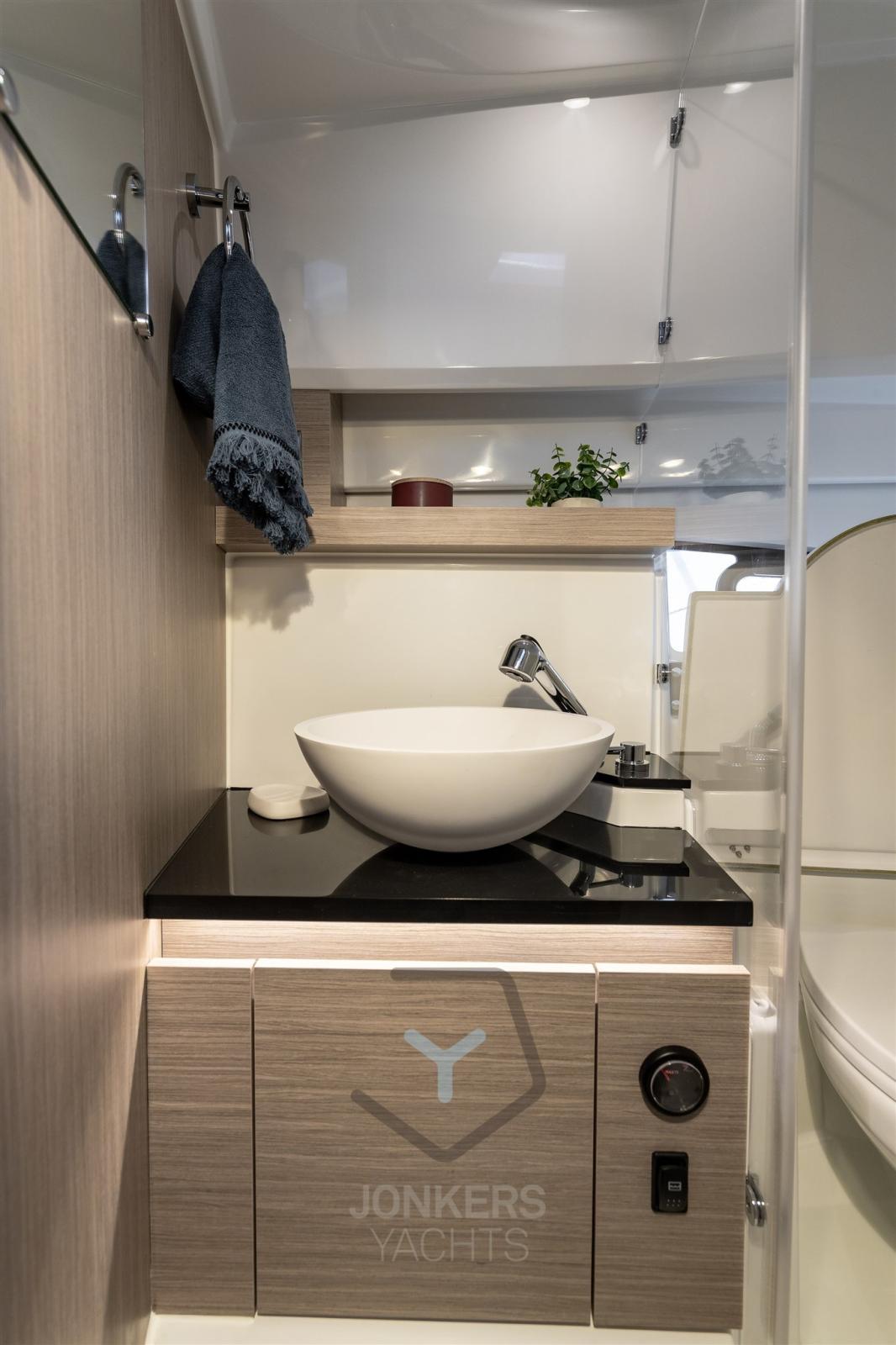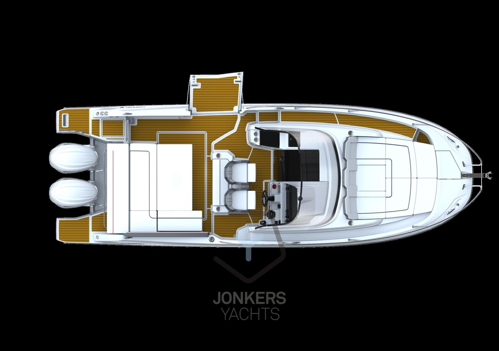 The foredeck features an additional cockpit, perfect for relaxing and enjoying a drink. The lounger can also be transformed into a generous sundeck. At the end of the day, you can prepare a delicious meal thanks to the integrated galley in the optional leaning post, complete with refrigerator and grill. Cruise off into the sunset and spend the night on board. The two separate cabins with double beds offer all the comfort you desire.