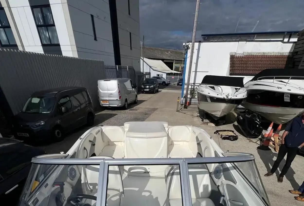 BAYLINER 185 2011 MODEL This Bayliner 185 features bucket seating with a two-position bolster and fiberglass walk-through entries at both the bow and transom.The 185 includes many features found on larger runabout models, such as a waterproof stereo, generous storage throughout, and fiberglass cockpit flooring with removable carpet.Powered by the popular Mercruiser 3.0 with Alpha 1 outdrive.This boat, named Vassy, has been lovingly maintained by its previous owner, who kept a log of every trip and hours of operation. The boat has been kept to a high standard and washed off after every use.It is fitted with a 3 LITRE 135HP PETROL INBOARD ENGINE.This is likely the nicest example of the very popular Bayliner 185.It has been meticulously looked after by its previous owner.There have been 2 OWNERS FROM NEW.Includes a FULL TONNEAU AND BOW COVER.Standard Features - Hull & Deck12v Navigation LightsBow & Transom EyesGRP Floor LinerMooring CleatsFuel Fill with Integrated VentIntegral Transom Platform with LadderStainless Steel Tow RingVinyl Gunwale MouldingWraparound Windshield with Safety Glass & Opening Center SectionCockpitAft Jump Seats – Convert to SunloungerPort & Starboard Sleeper Seats – Convert to SunloungerDrink HoldersGrab HandlesHull Side StorageIn-floor StorageGlove BoxPort & Starboard Console StorageStereoHelm12v Accessory Outlet12v HornCustom Moulded Dash Panels with Non Glare BrowInstruments Include:- Fuel, Oil Pressure, Speedometer, Tachometer, Temperature, Trim and Voltmeter GaugesRack & Pinion SteeringSide Mounted Engine Control Drive Stick with Trim & Tilt Switch in HandleEngine Compartment12v BlowerBilge PumpCE CertificationExtrasRopesFendersAnchor kitImmediate viewing recommended in Poole, Dorset. Call now to arrange 01202 679421.2 wheel trailer not included in sale price.