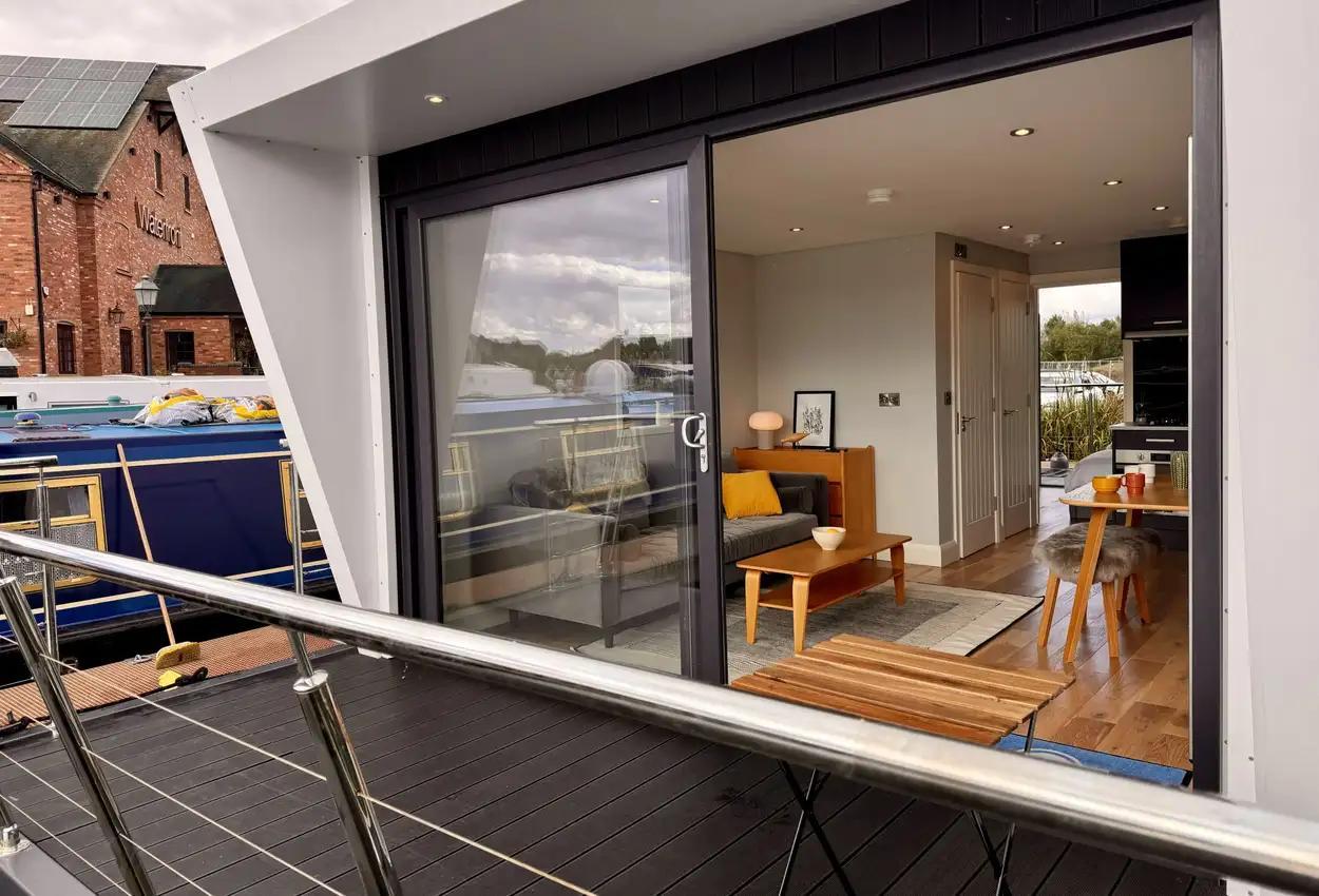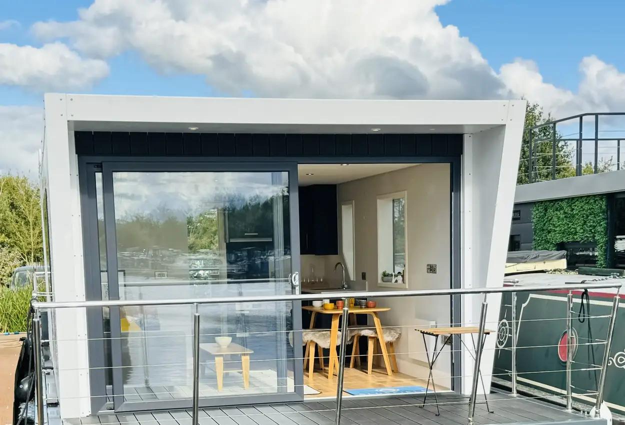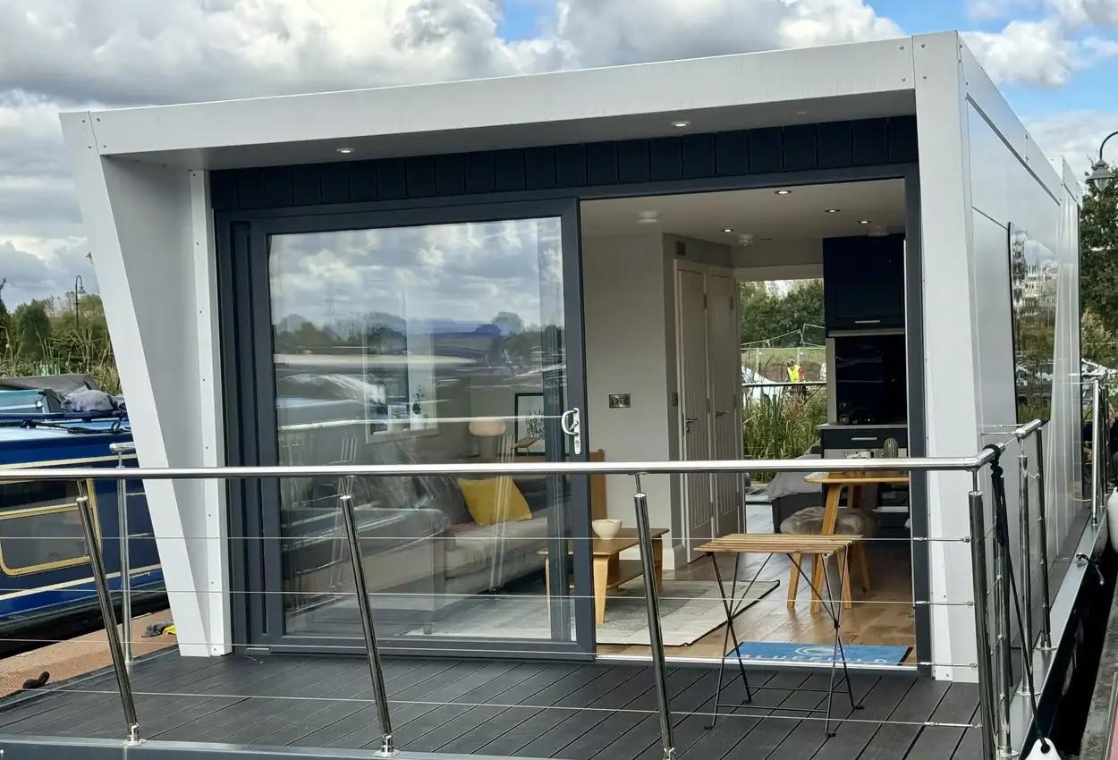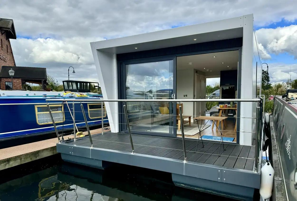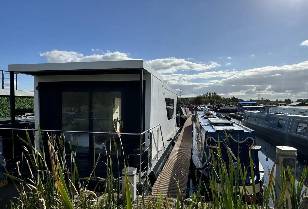 PLEASE NOTE: This is a static floating home lying in Barton, Staffordshire and has no powered engine of its own. Mains electricity and sewage connection is required.