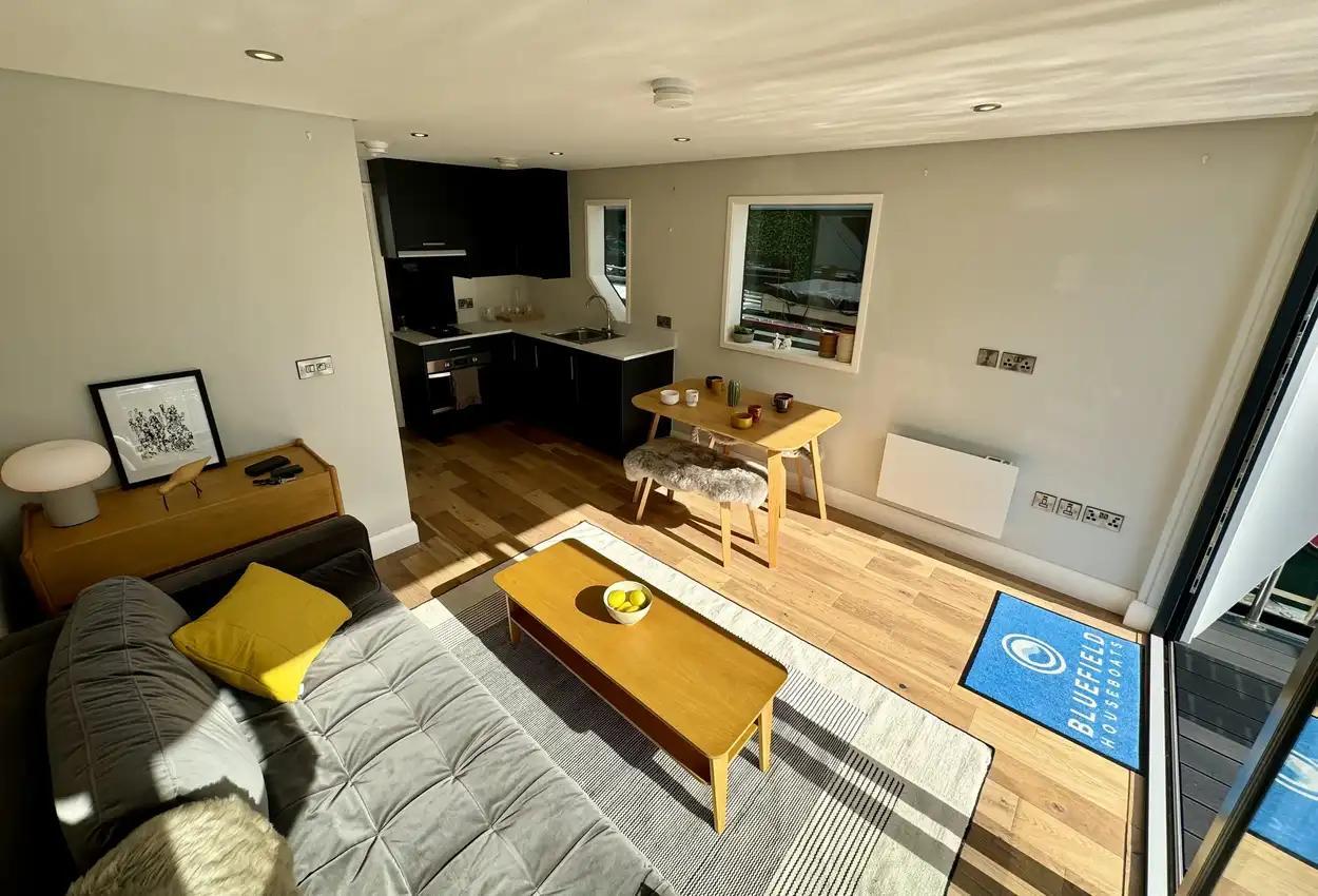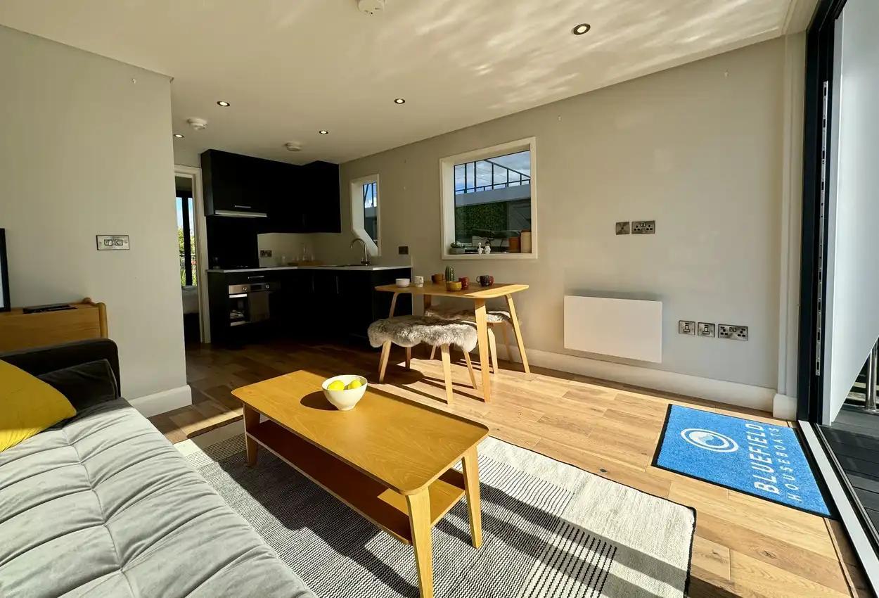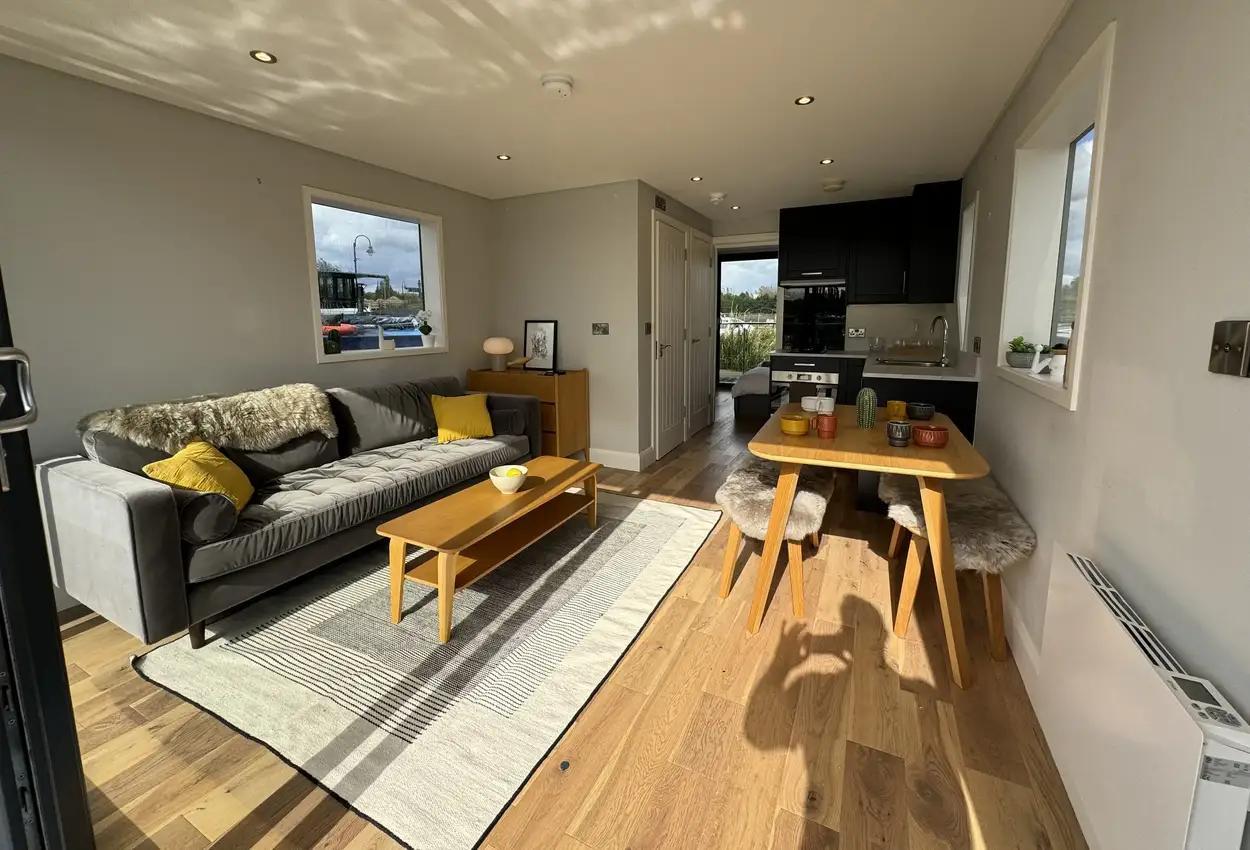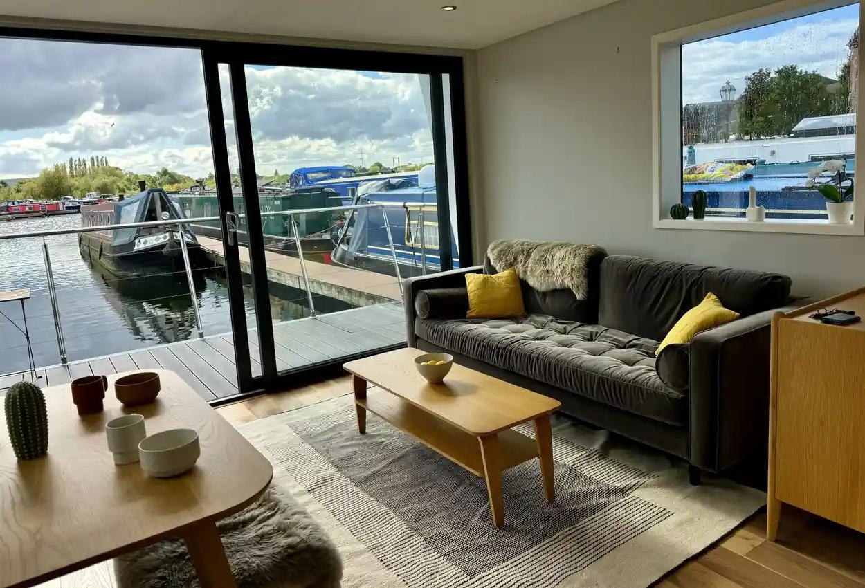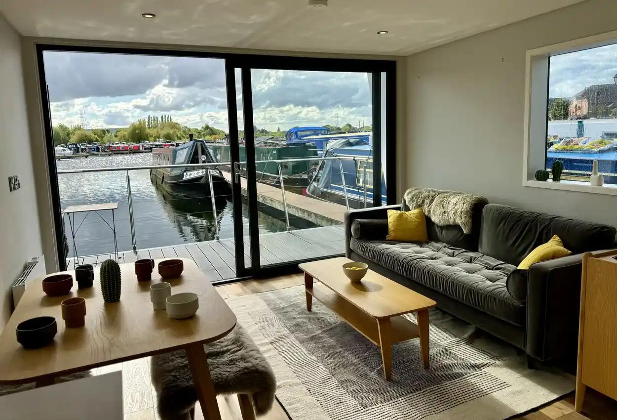 PLEASE NOTE: This is a static floating home lying in Barton, Staffordshire and has no powered engine of its own. Mains electricity and sewage connection is required.